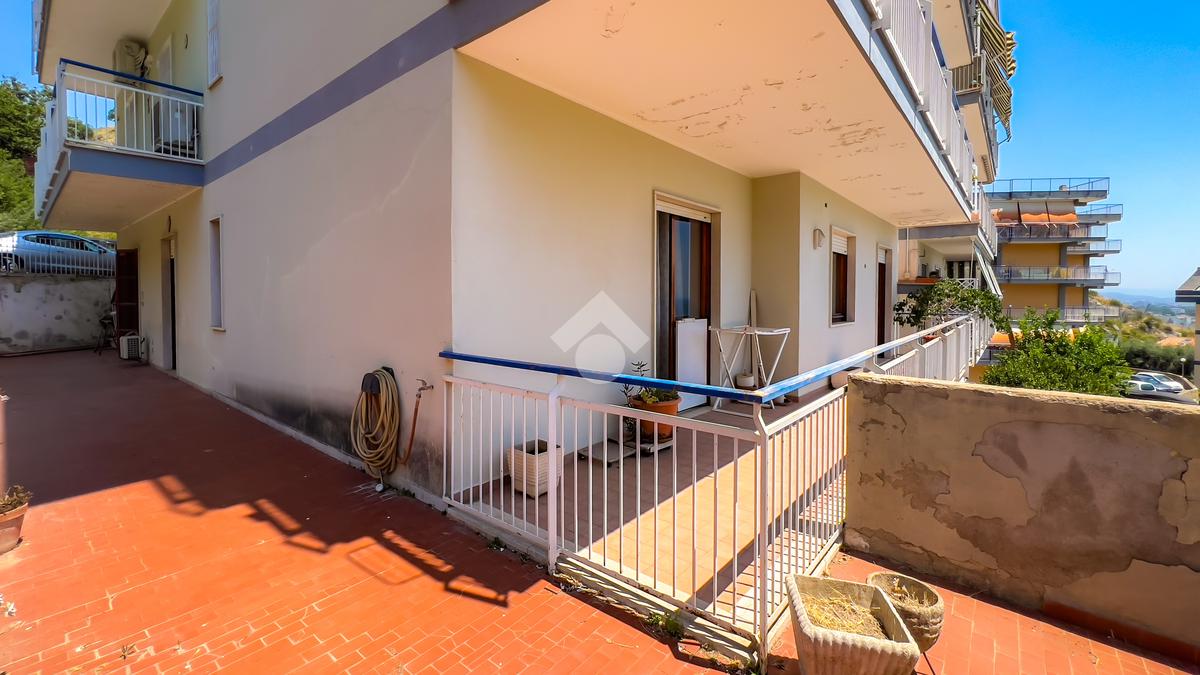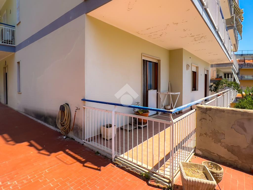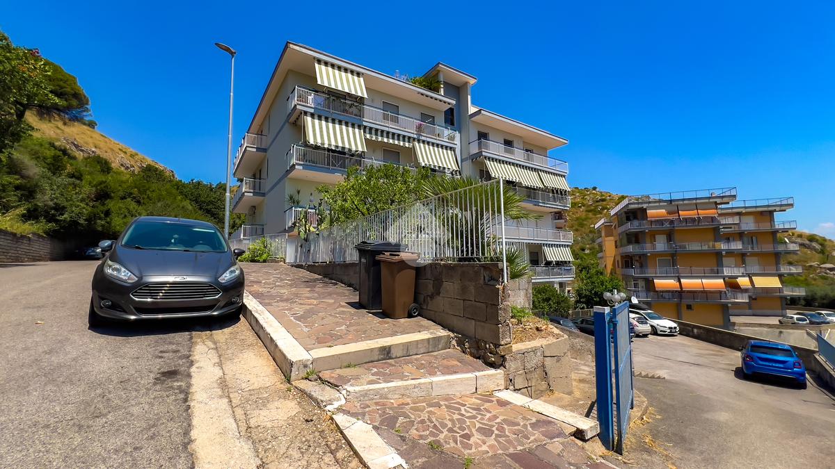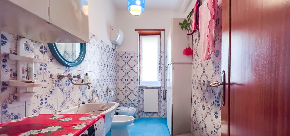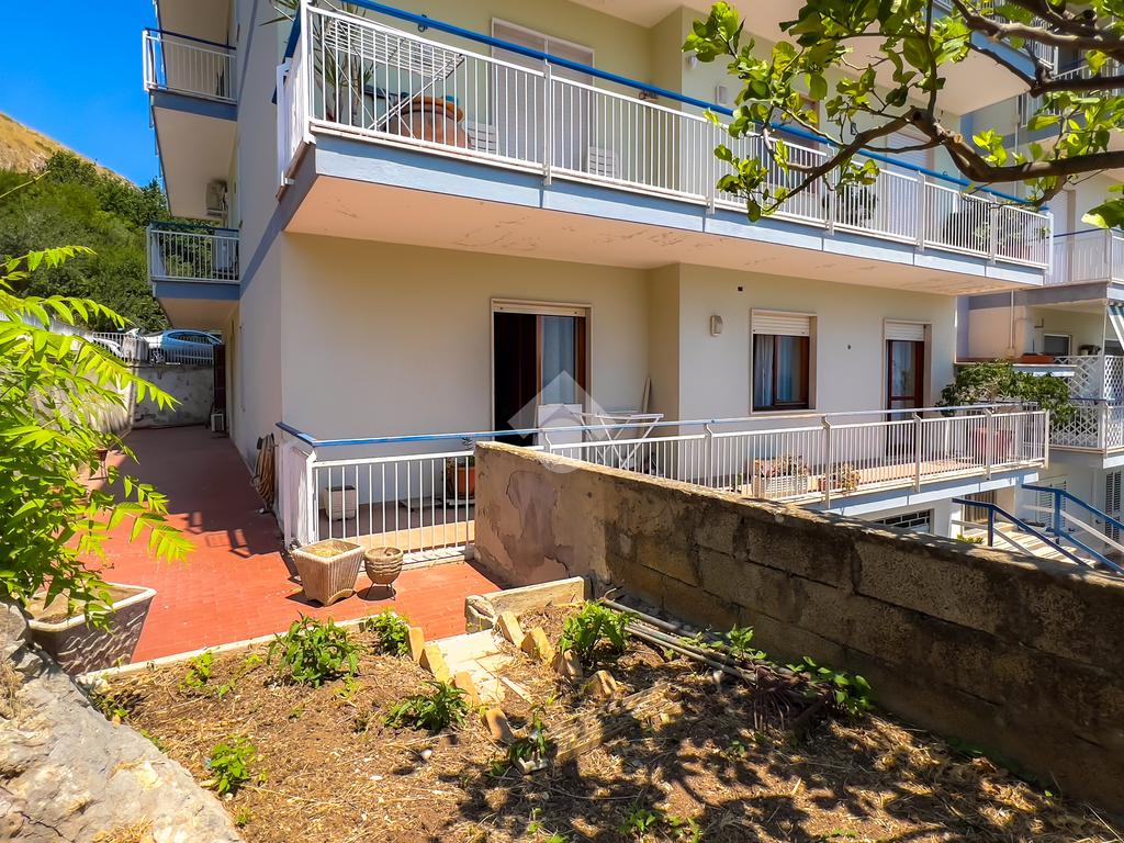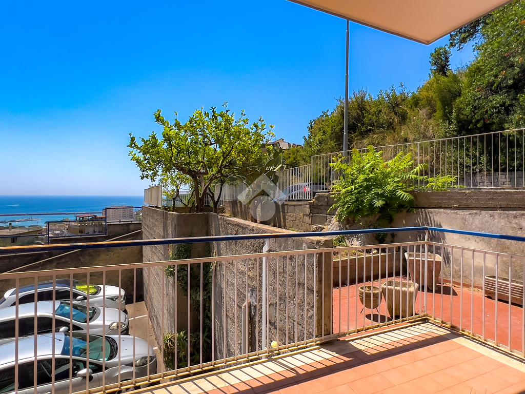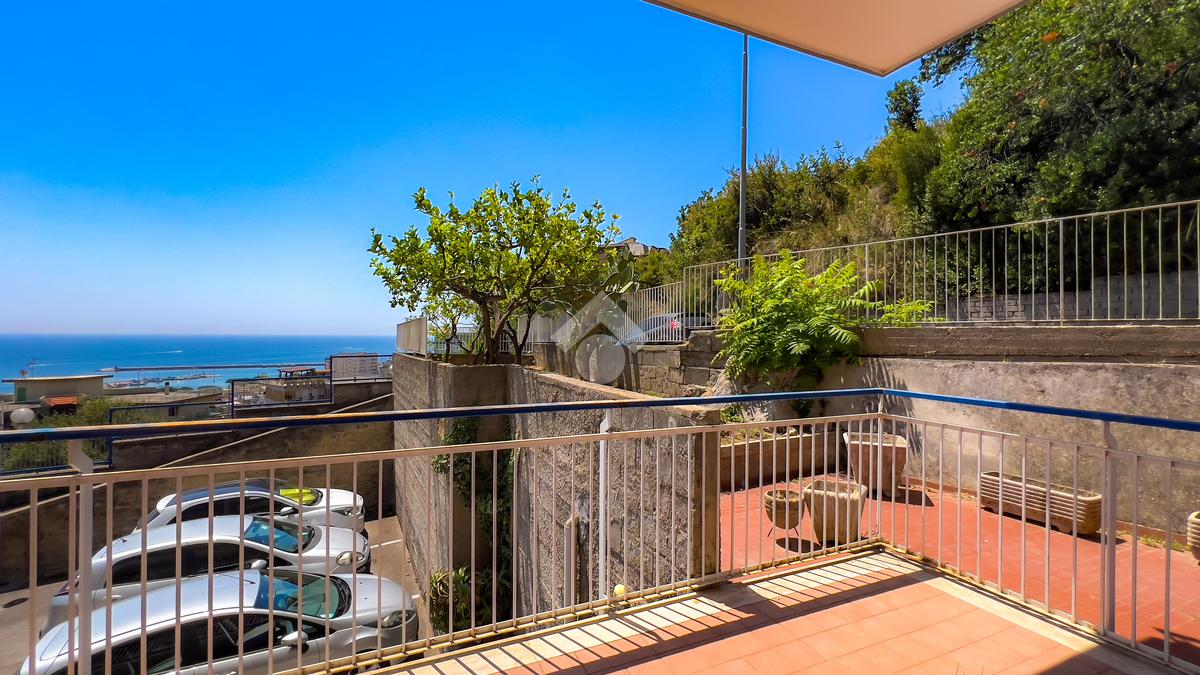 La superficie interna è di circa 135 mq e si apre su un disimpegno che conduce alla zona giorno, dove troviamo un soggiorno con uscita su terrazzo vista mare e cucina abitabile con uscita su altro terrazzo. Proseguendo troviamo la zona notte con tre camere da letto due matrimoniali, con uscita sulla corte esterna di proprietà esclusiva di circa 55mq, e una singola, due bagni finestrati, di cui uno padronale e uno con vasca.