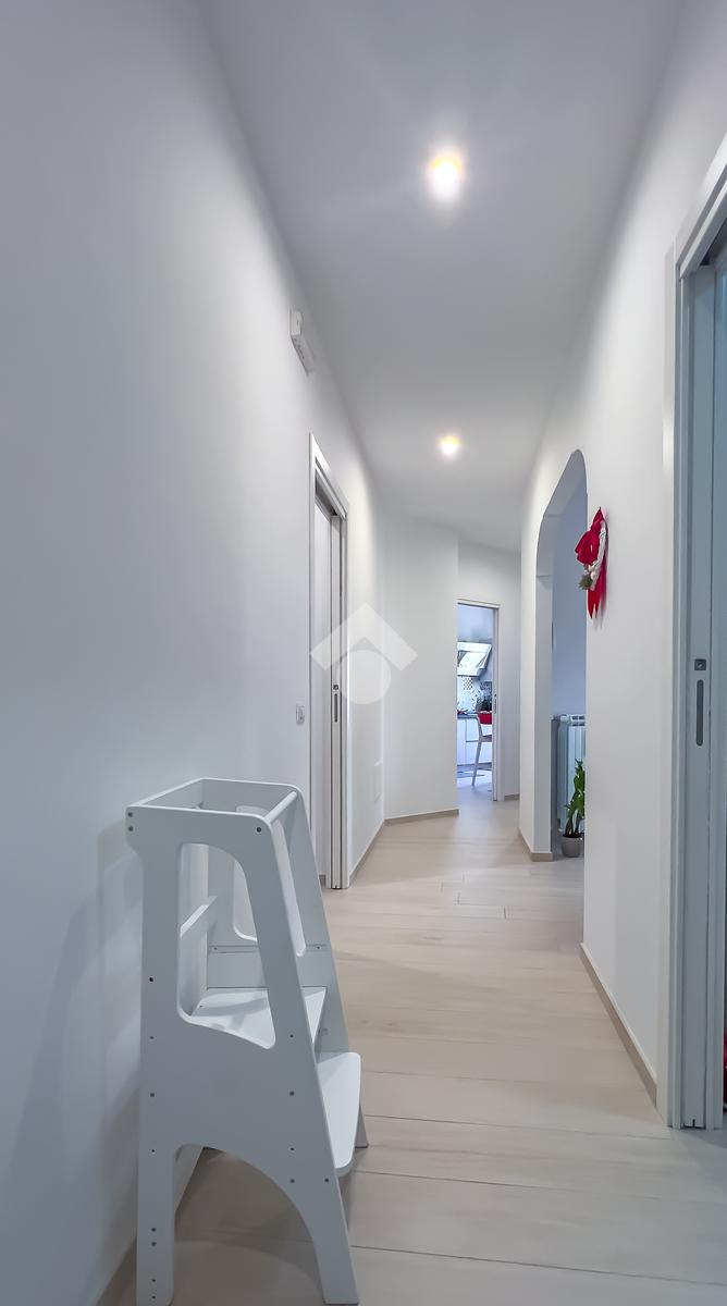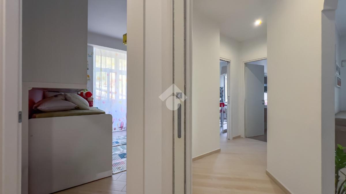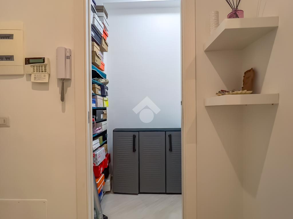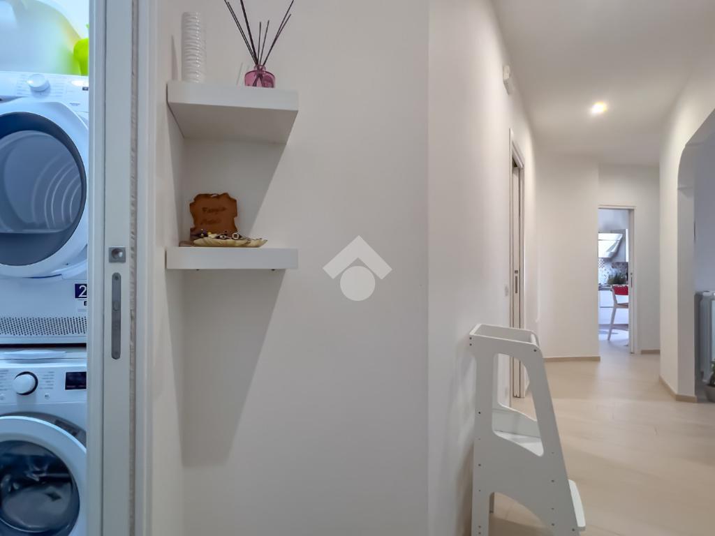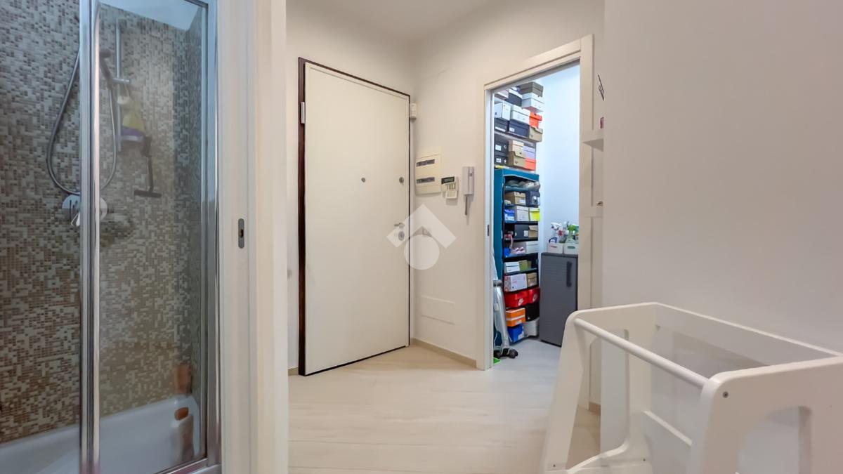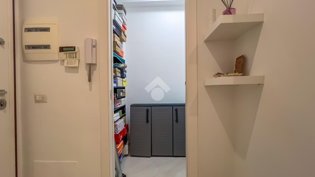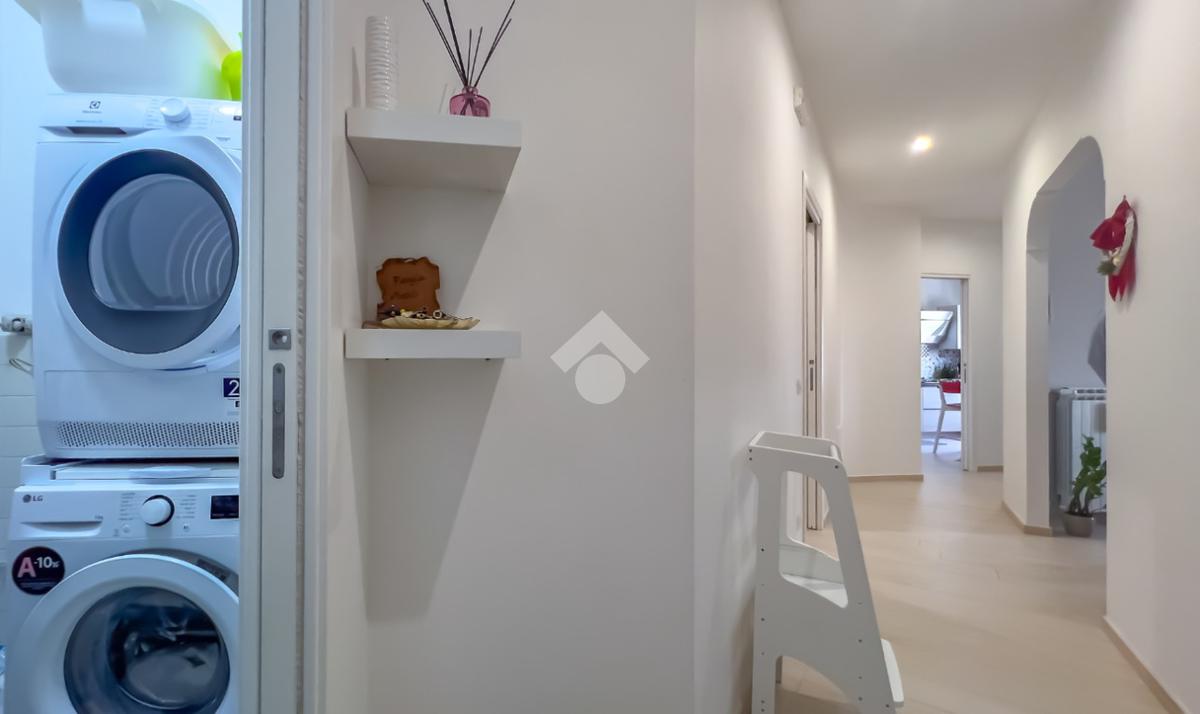 Varcata la porta d’ingresso, un corridoio luminoso accompagna verso gli ambienti principali. Subito sulla destra si trova un bagno di servizio con box doccia, mentre sulla sinistra un pratico ripostiglio organizzato come zona lavanderia aggiunge comodità quotidiana. Proseguendo, il soggiorno accogliente si apre sul balcone, uno spazio ideale per godersi momenti di relax all’aperto.