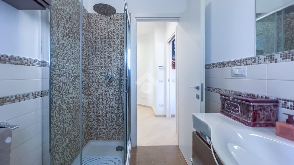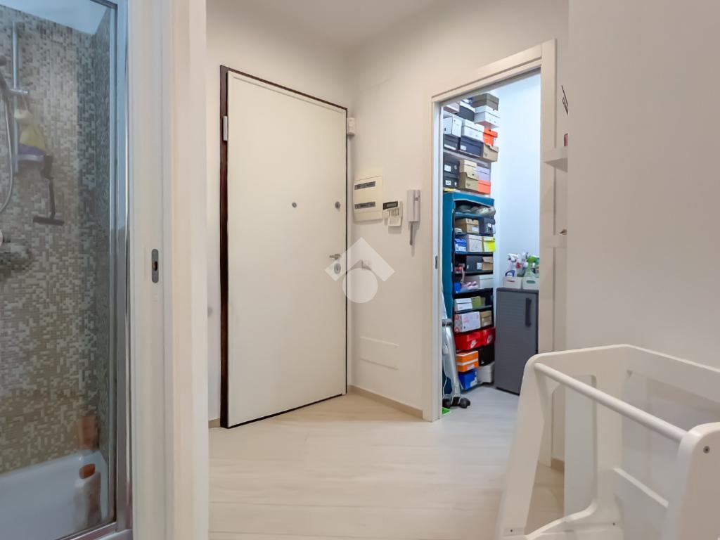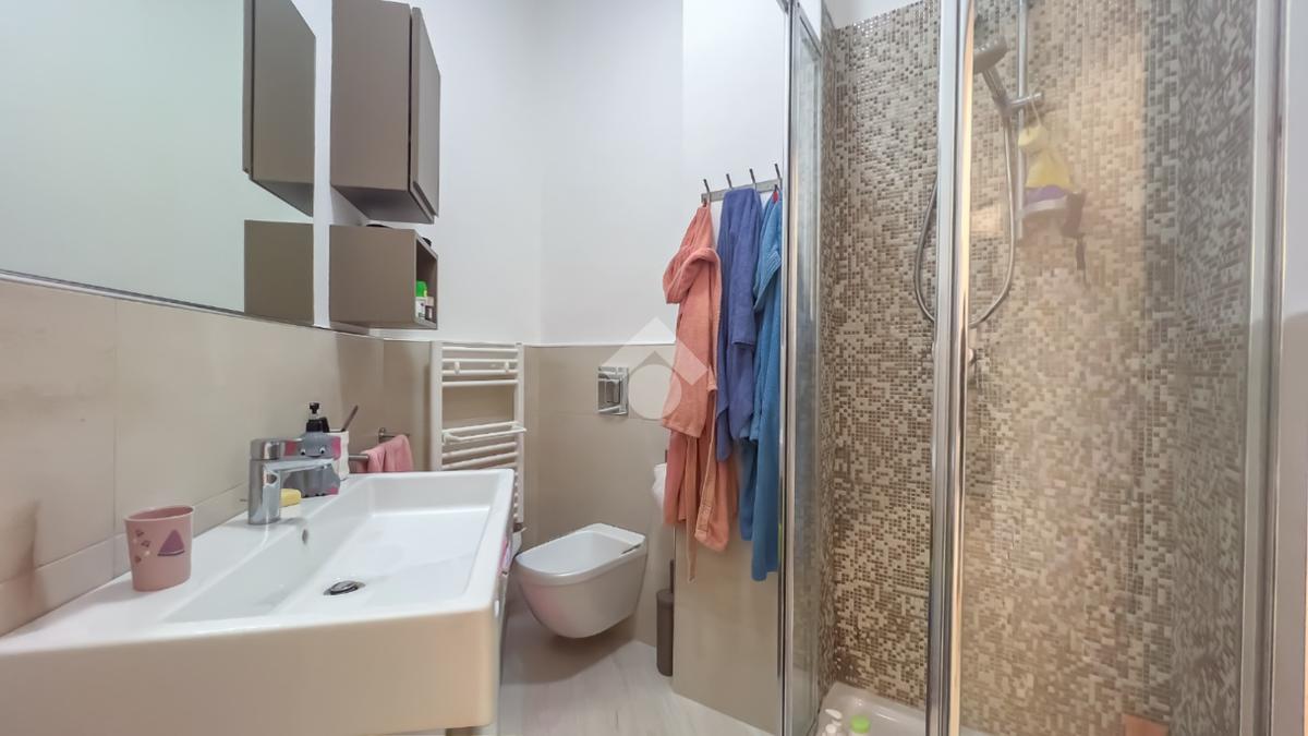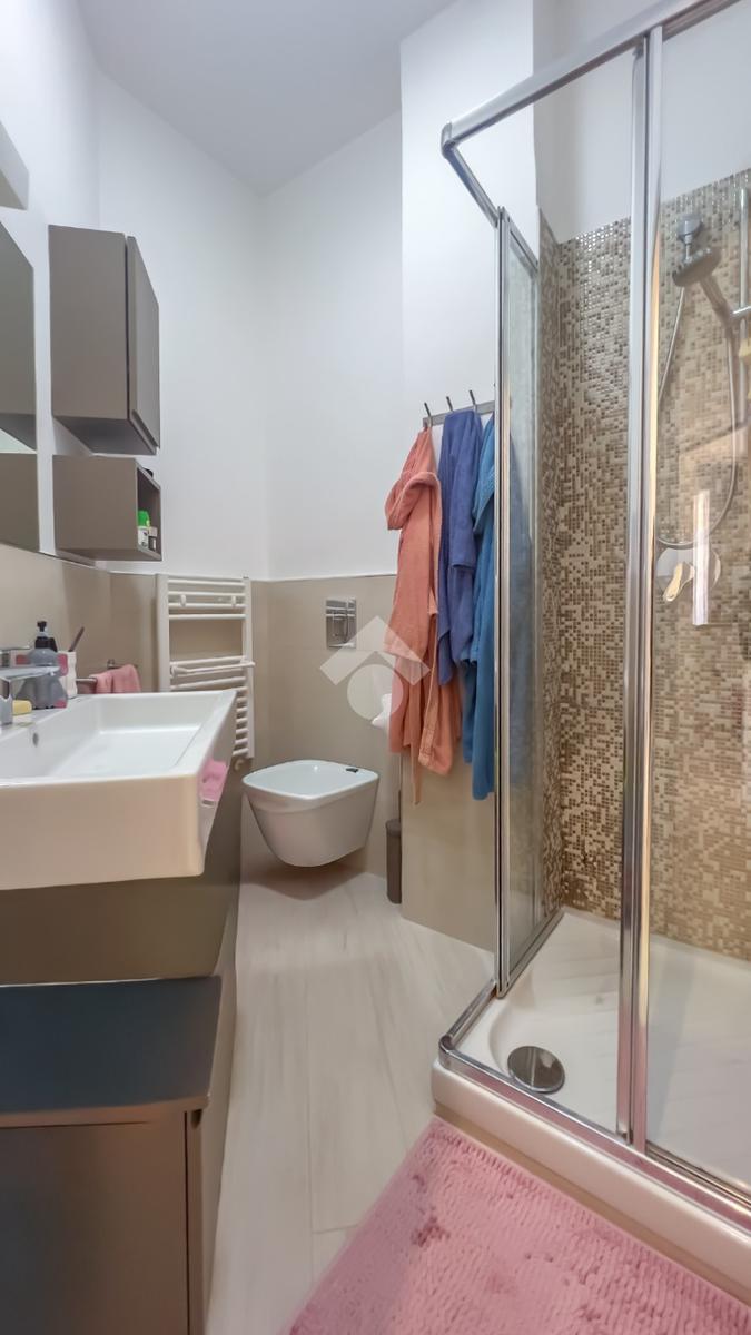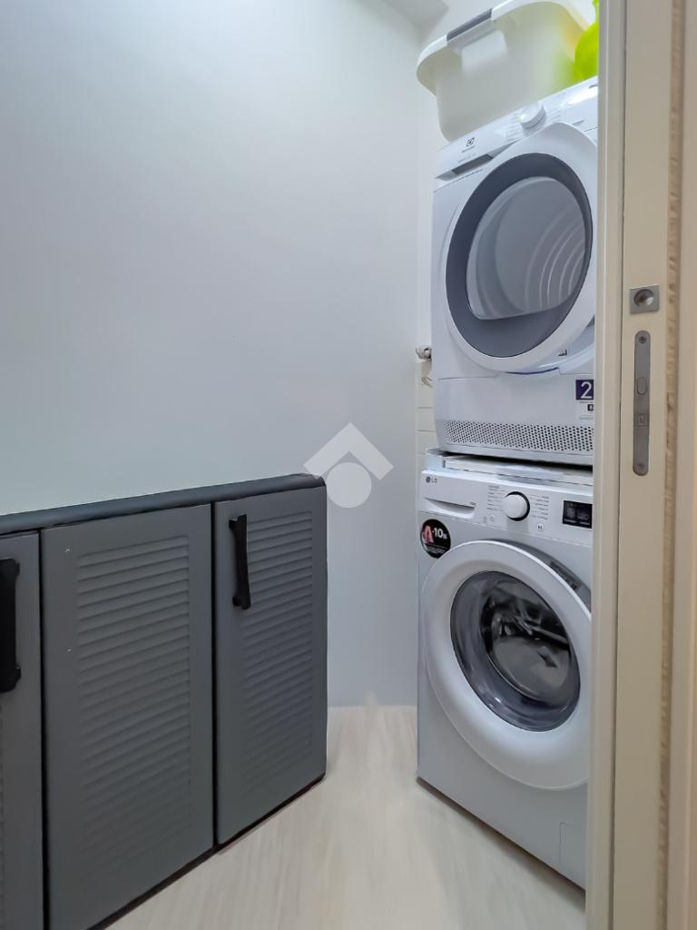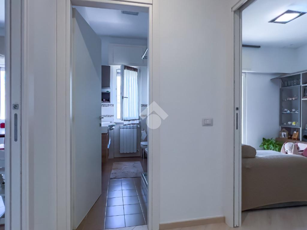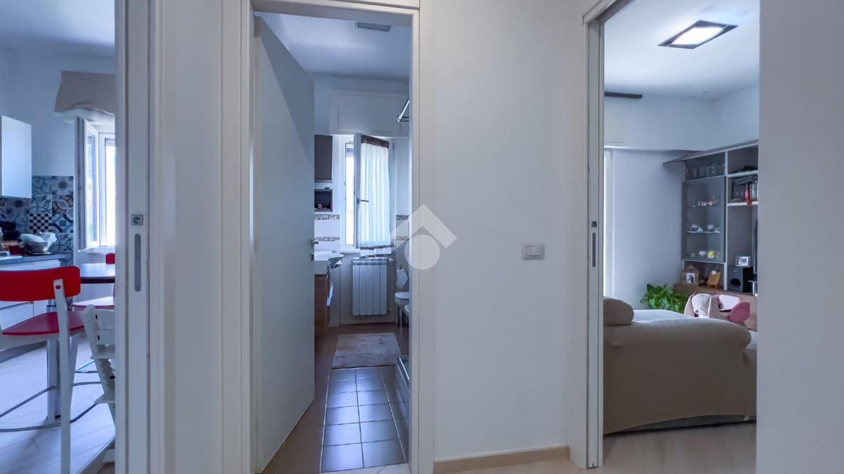 Varcata la porta d’ingresso, un corridoio luminoso accompagna verso gli ambienti principali. Subito sulla destra si trova un bagno di servizio con box doccia, mentre sulla sinistra un pratico ripostiglio organizzato come zona lavanderia aggiunge comodità quotidiana. Proseguendo, il soggiorno accogliente si apre sul balcone, uno spazio ideale per godersi momenti di relax all’aperto.