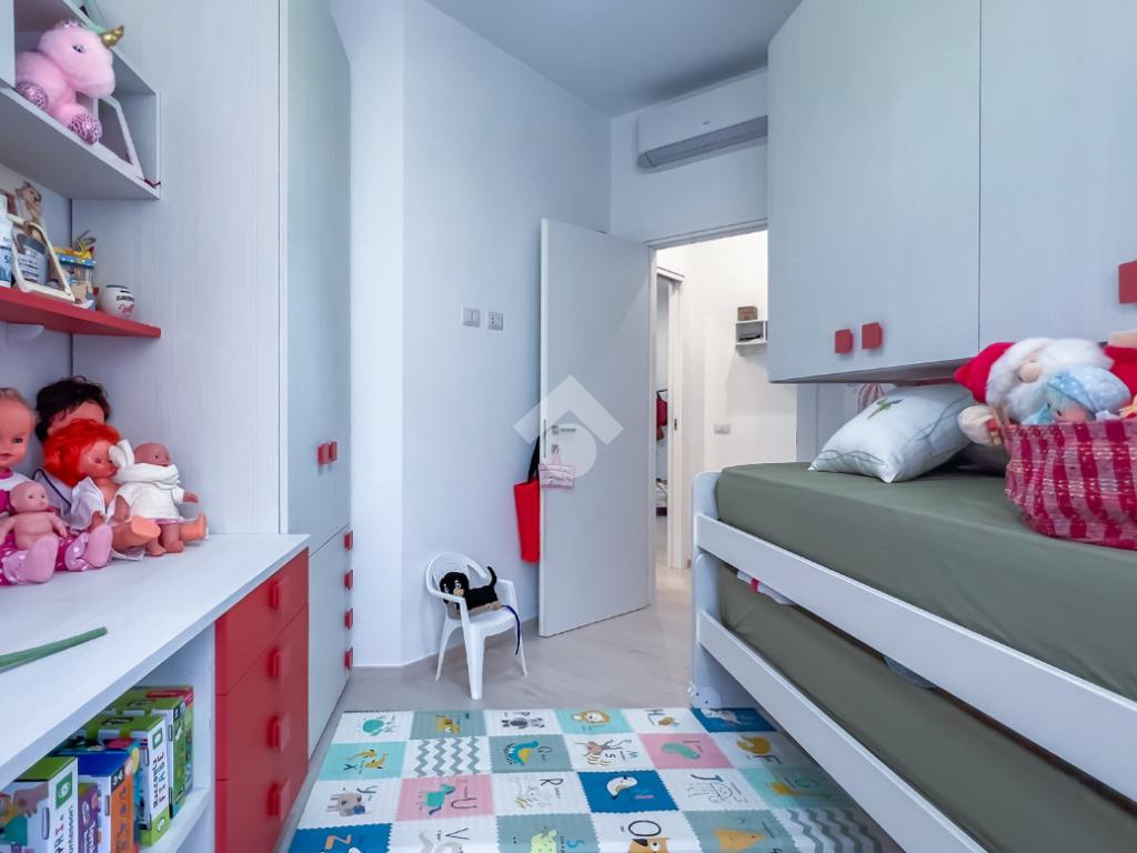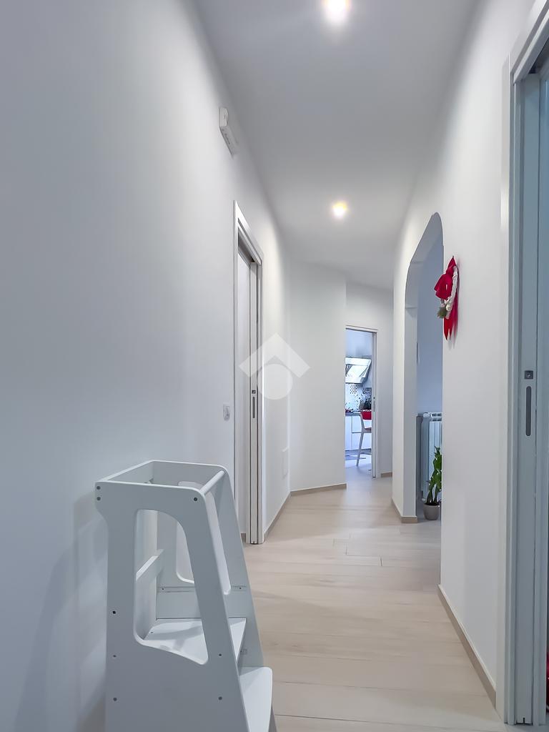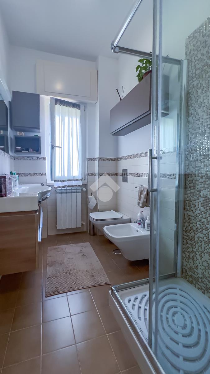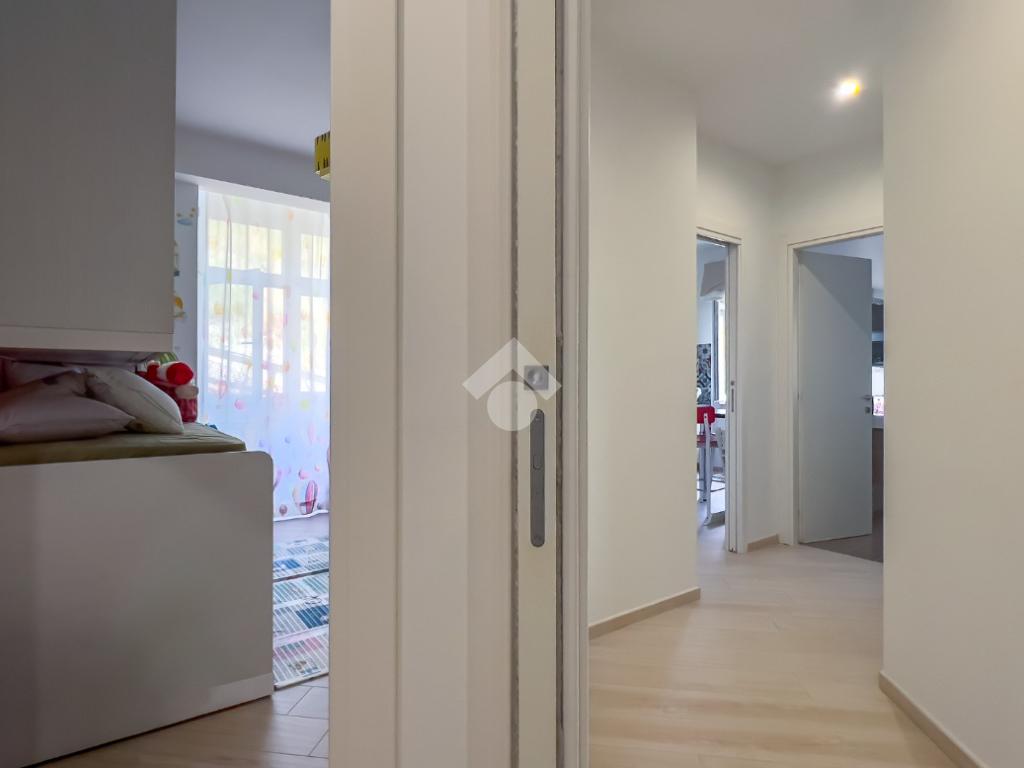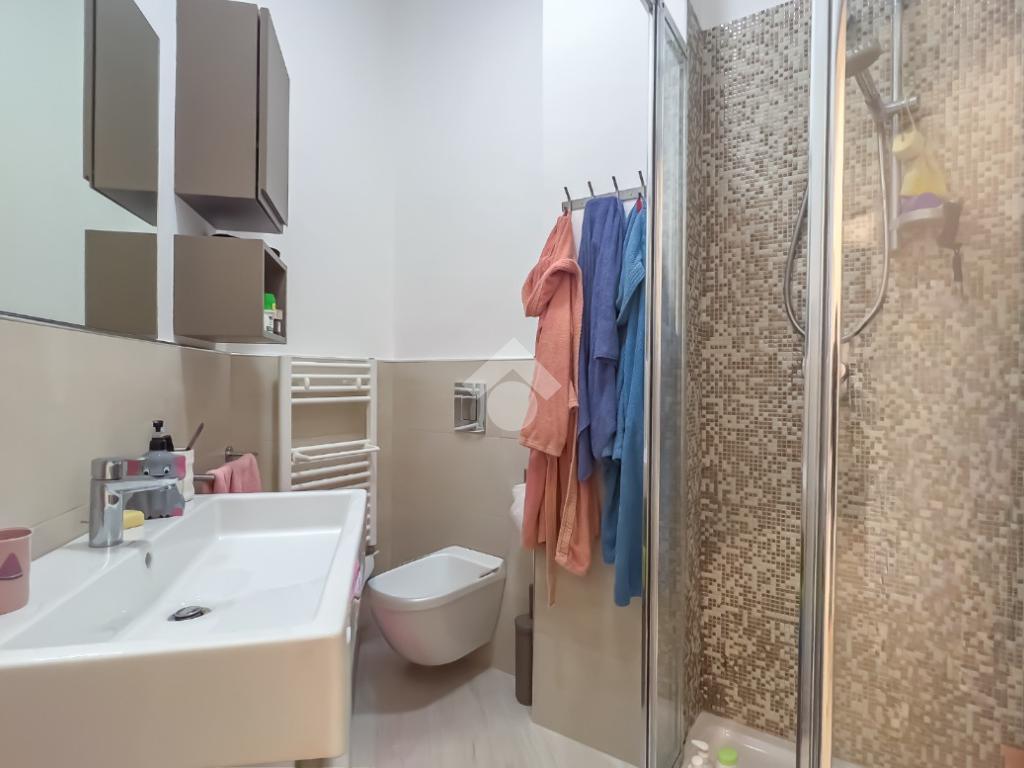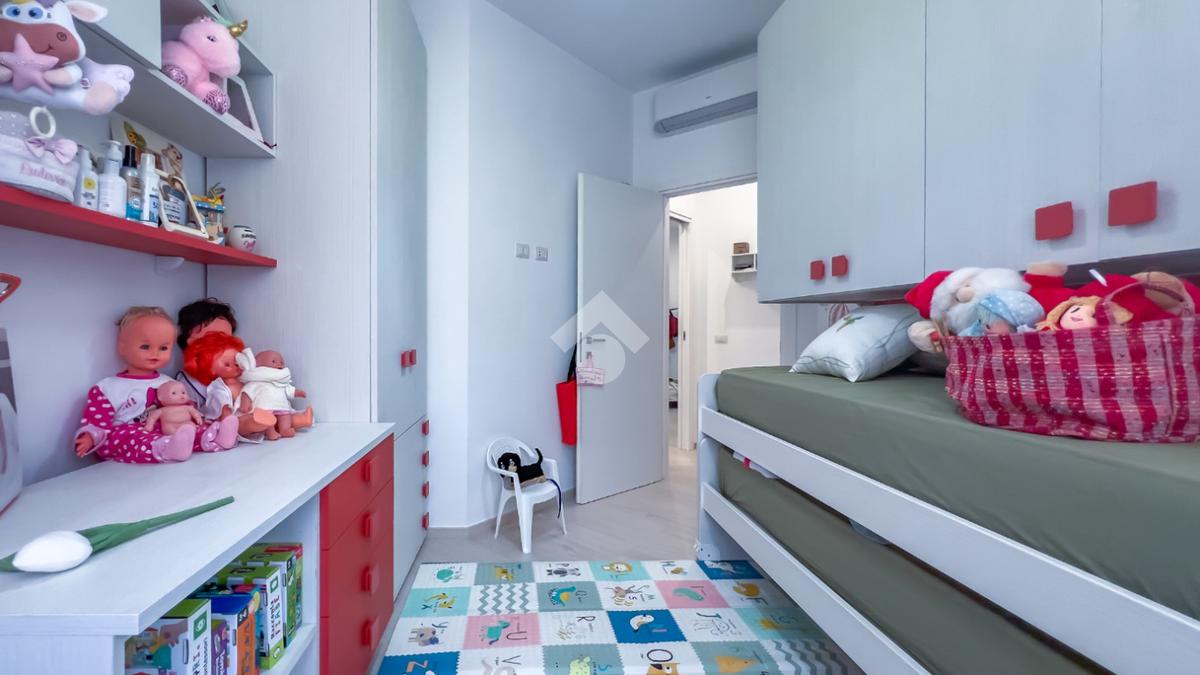 La cucina abitabile, separata e funzionale, permette di vivere la quotidianità in tutta comodità, mentre il secondo bagno, finestrato e dotato di box doccia, completa la zona giorno. La zona notte accoglie una camera doppia e una camera matrimoniale con cabina armadio, pensata per garantire ordine e comfort.