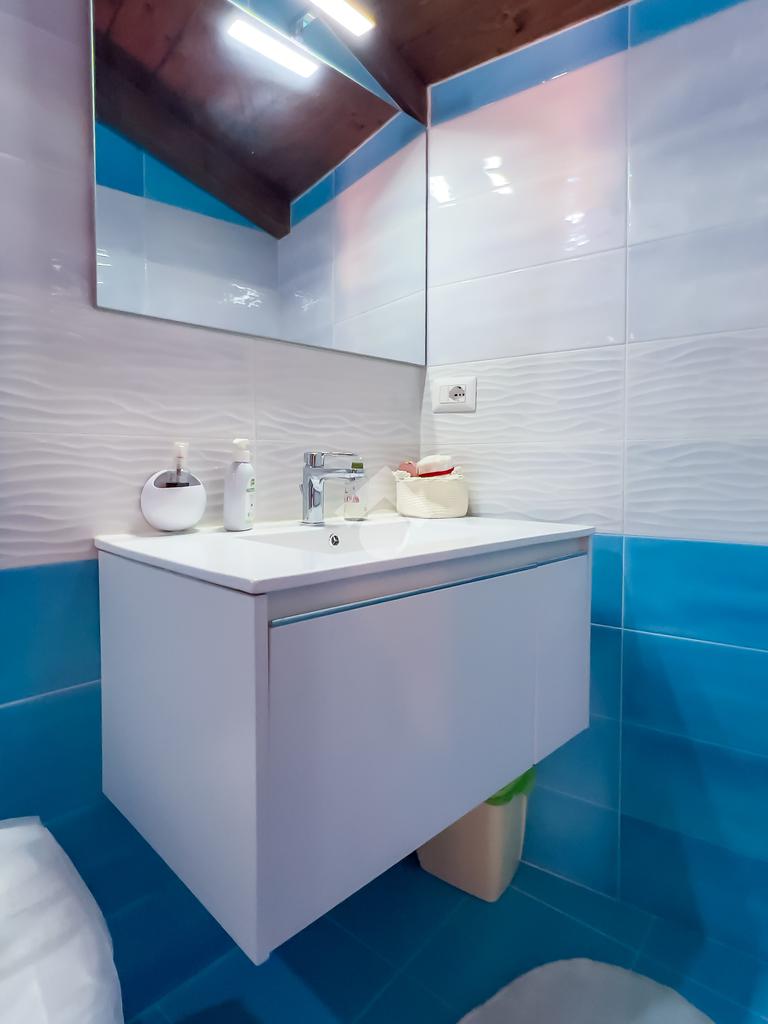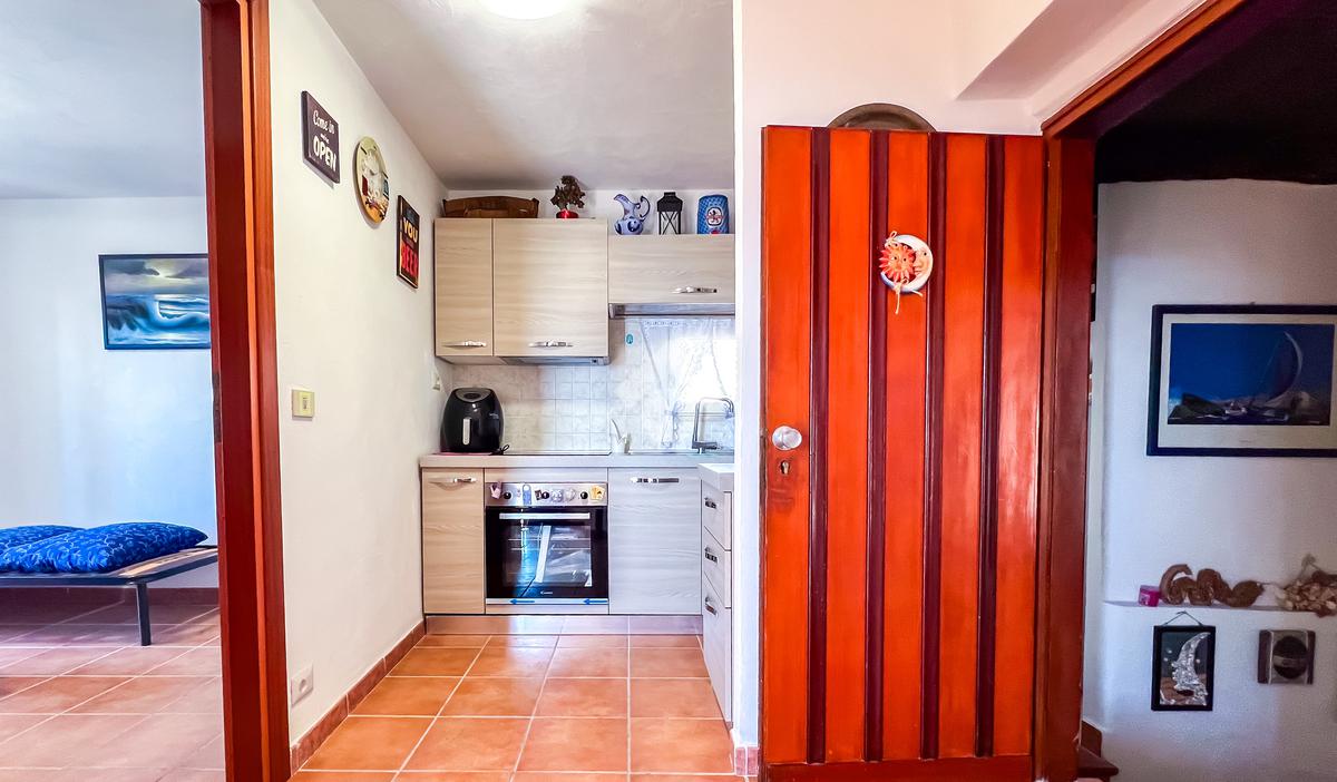 Al primo piano si sviluppa la zona giorno, composta da un accogliente soggiorno con accesso diretto al terrazzo vista mare, perfetto per pranzi e momenti di relax all’aperto, una sala da pranzo con balcone alla romana e un angolo cottura funzionale.