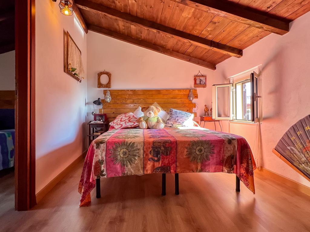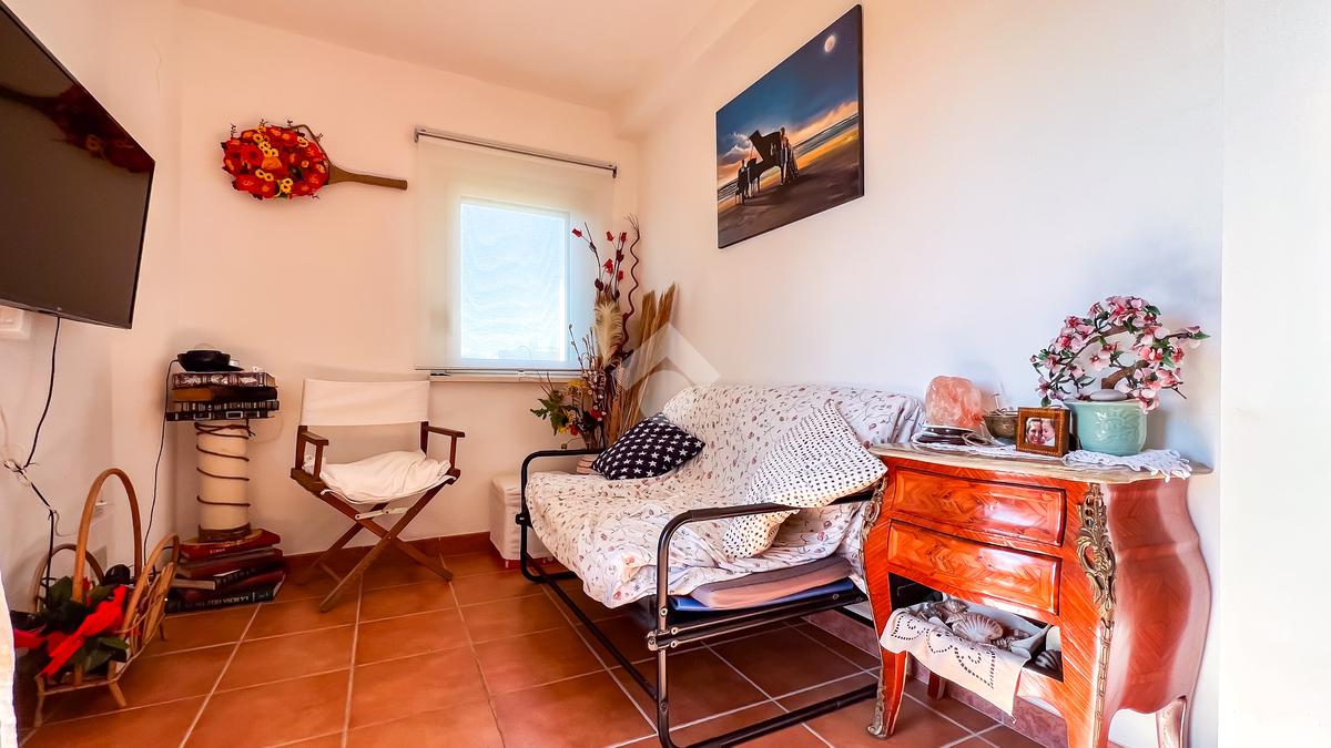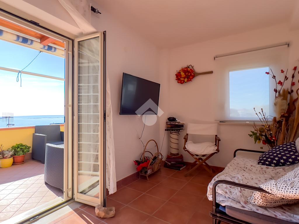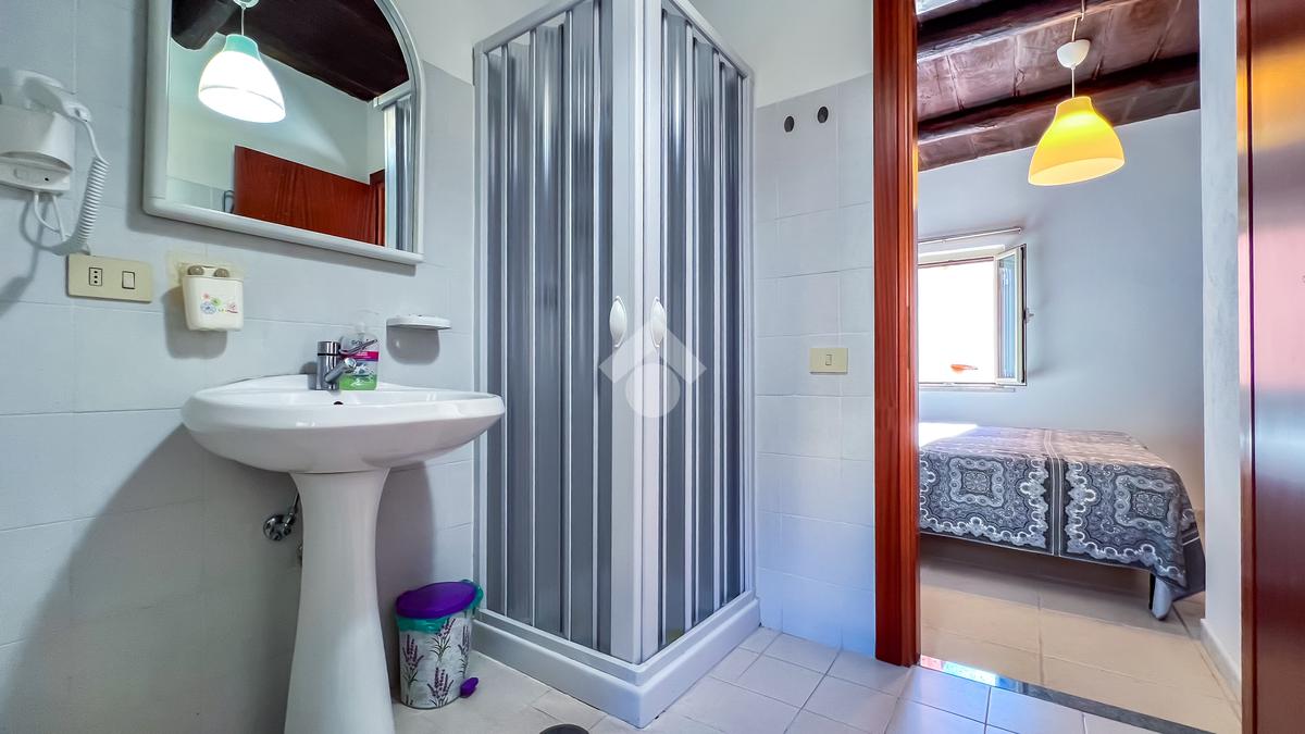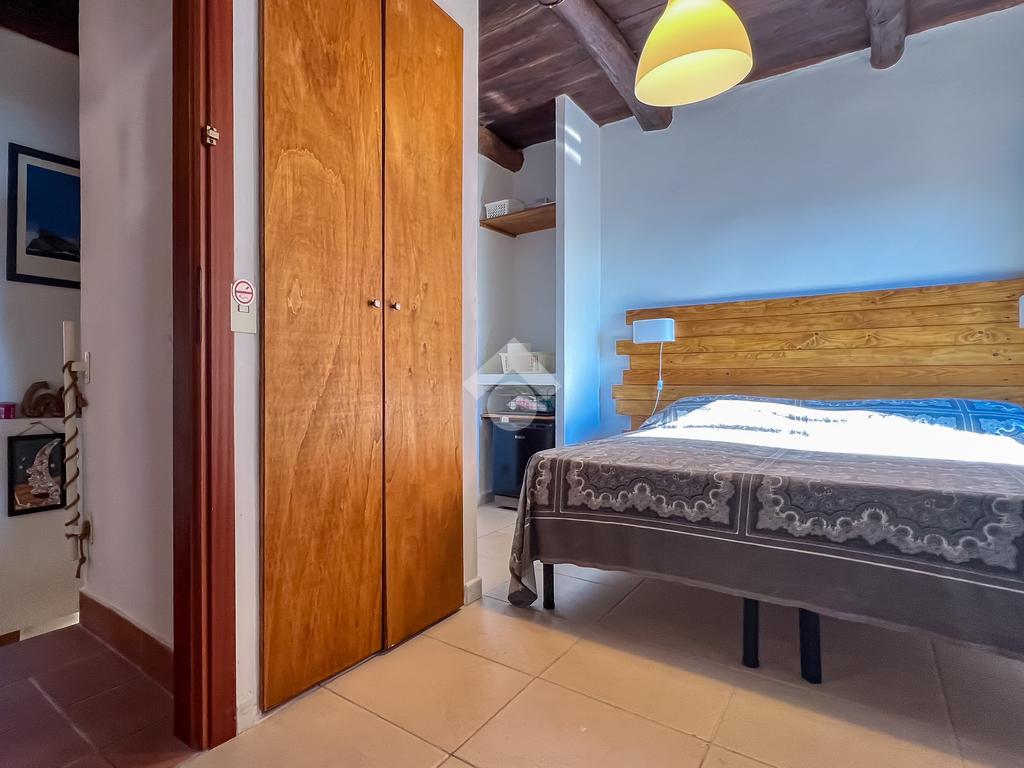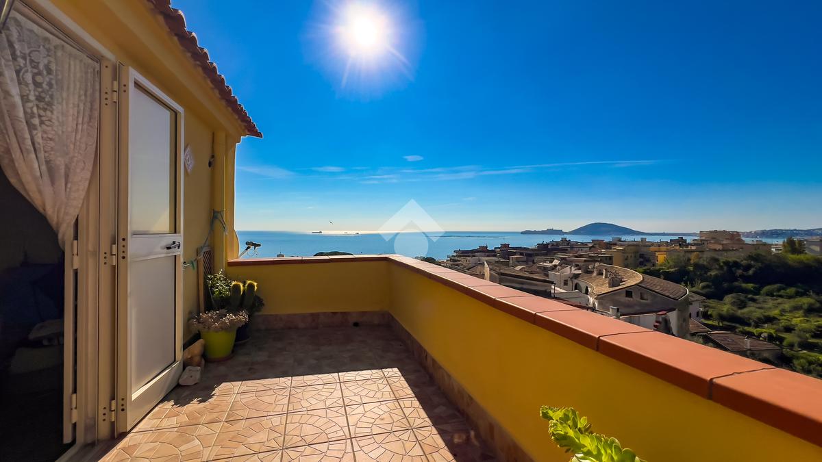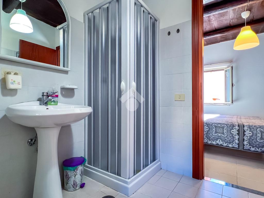 Attraverso una scala interna situata nel soggiorno si accede al secondo piano, dove si apre la zona notte, composta da un disimpegno, due camere da letto, di cui una con bagno privato, e un ulteriore bagno a servizio del piano. Dal disimpegno si accede al secondo terrazzo vista mare, ideale per ammirare tramonti e momenti di tranquillità. Completa la proprietà un locale di pertinenza, utile come deposito o ambiente di servizio.