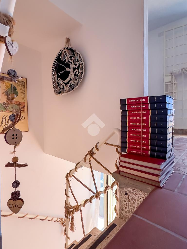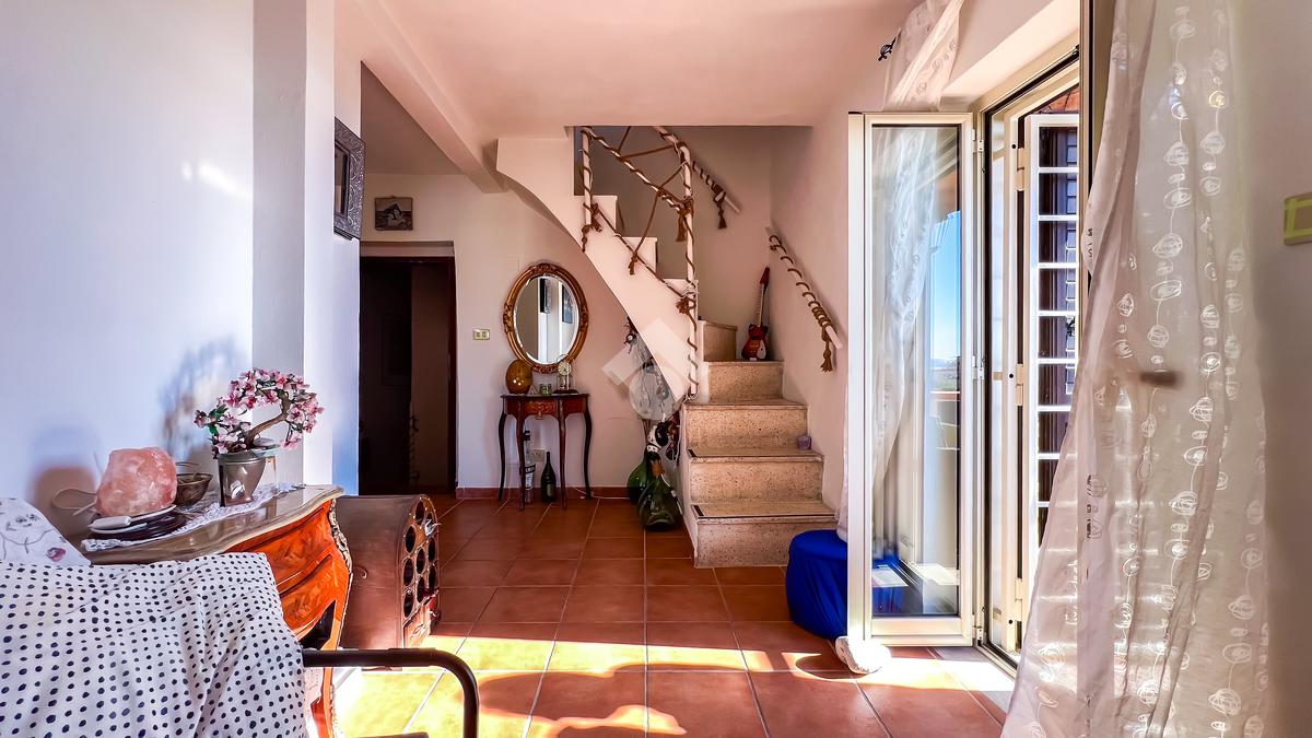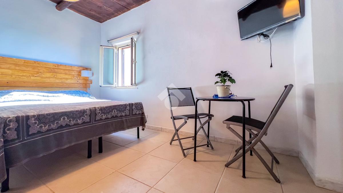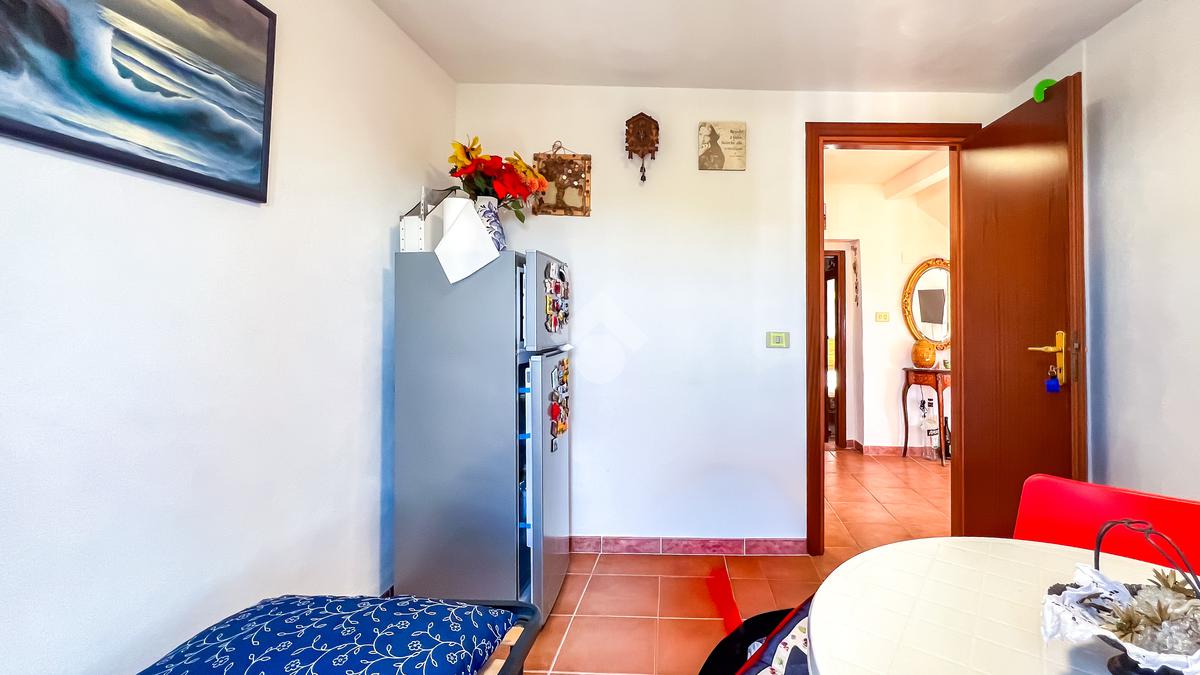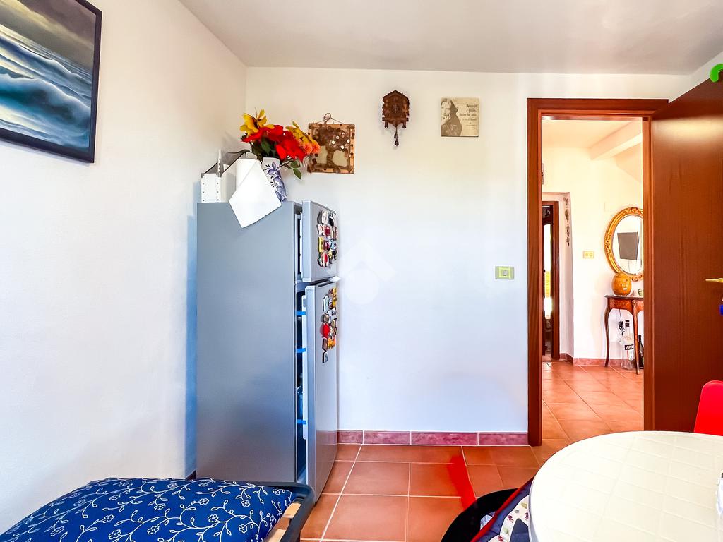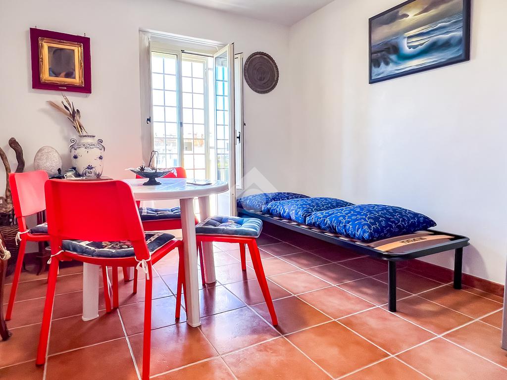 Attraverso una scala interna situata nel soggiorno si accede al secondo piano, dove si apre la zona notte, composta da un disimpegno, due camere da letto, di cui una con bagno privato, e un ulteriore bagno a servizio del piano. Dal disimpegno si accede al secondo terrazzo vista mare, ideale per ammirare tramonti e momenti di tranquillità. Completa la proprietà un locale di pertinenza, utile come deposito o ambiente di servizio.