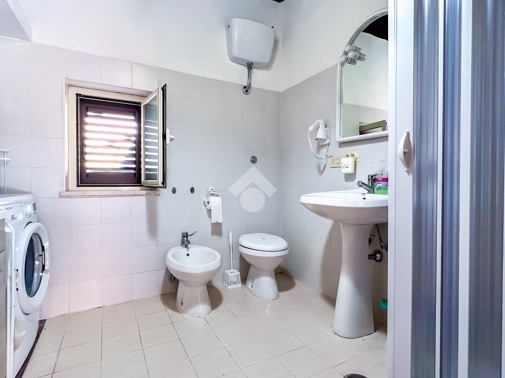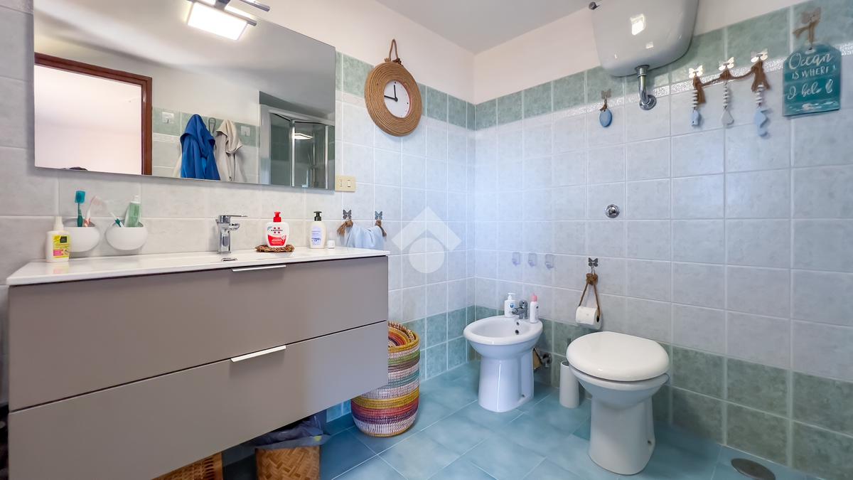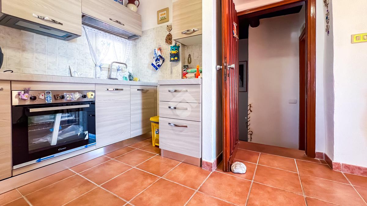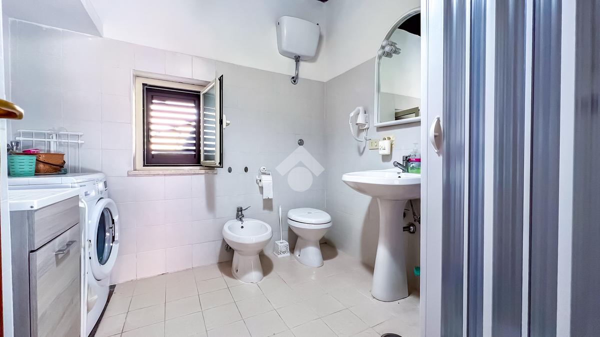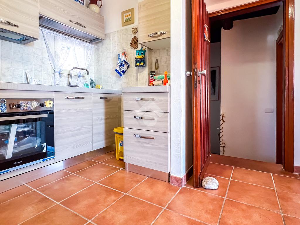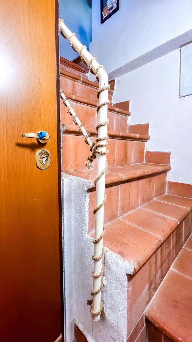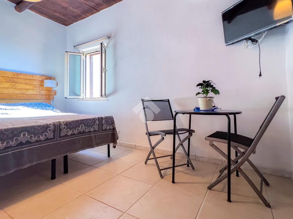 Attraverso una scala interna situata nel soggiorno si accede al secondo piano, dove si apre la zona notte, composta da un disimpegno, due camere da letto, di cui una con bagno privato, e un ulteriore bagno a servizio del piano. Dal disimpegno si accede al secondo terrazzo vista mare, ideale per ammirare tramonti e momenti di tranquillità. Completa la proprietà un locale di pertinenza, utile come deposito o ambiente di servizio.