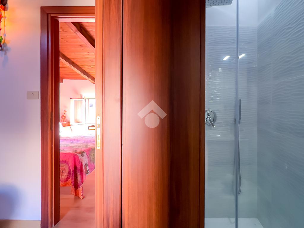 Sul medesimo livello troviamo inoltre una camera matrimoniale con bagno privato, completo di box doccia e finestra.