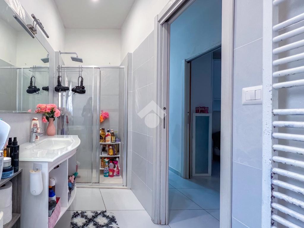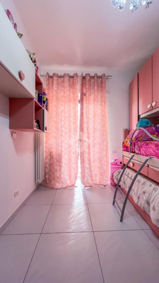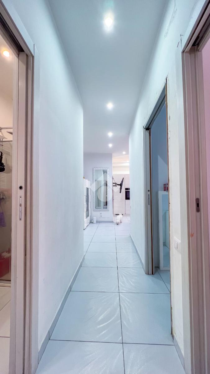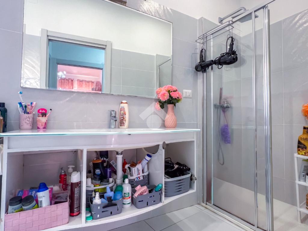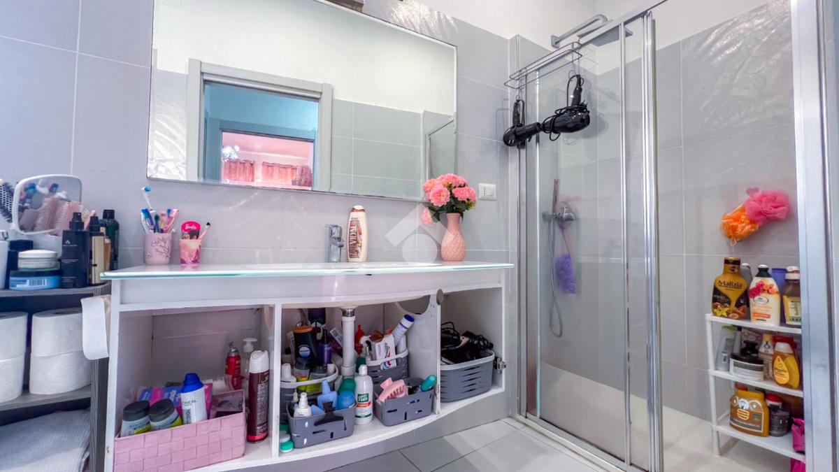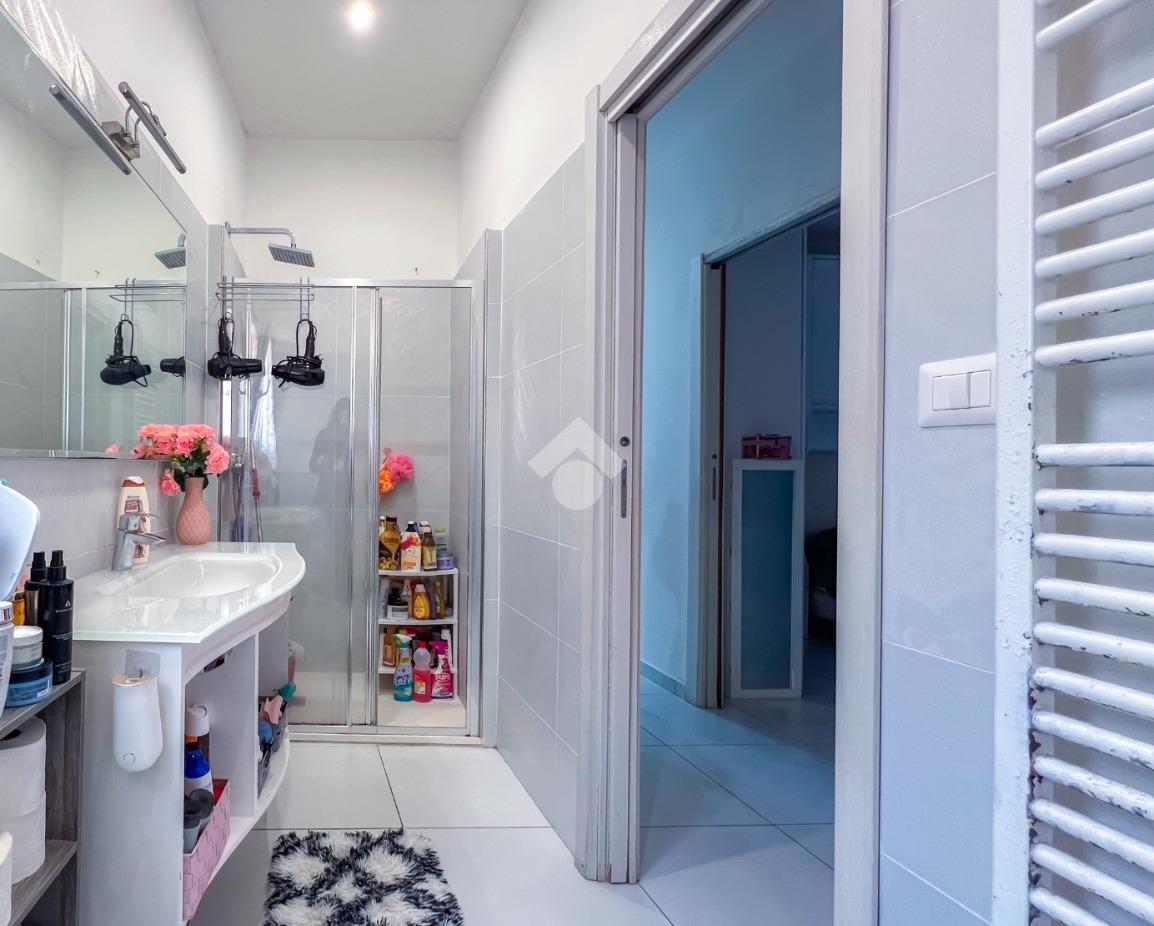 Proseguendo nel disimpegno, troviamo la zona notte che include una camera matrimoniale, una camera singola anch’esse con uscita sul balcone comunicante con il soggiorno e due bagni di cui uno con box doccia e uno di servizio.