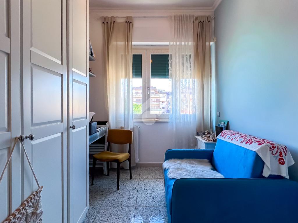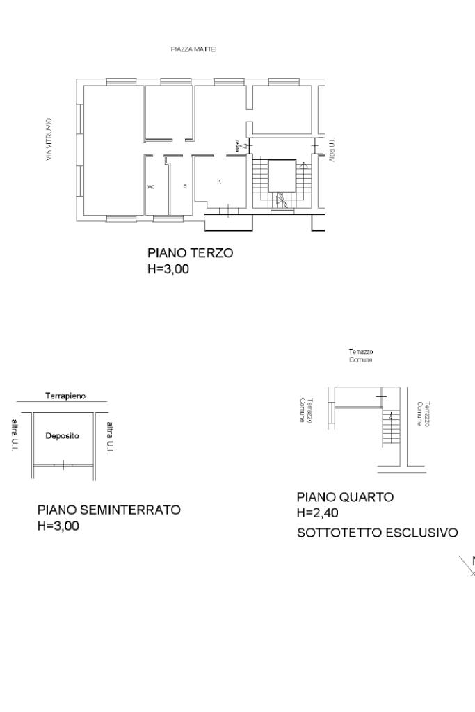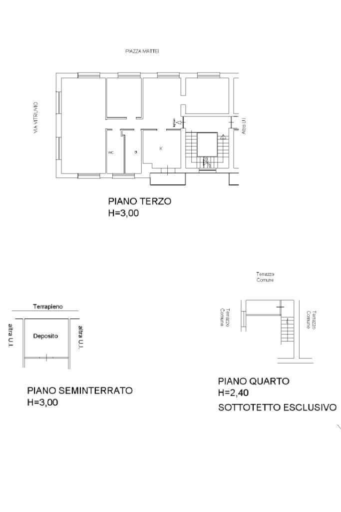 L’immobile dispone di un posto auto, due depositi (uno al piano seminterrato e uno al quarto piano) e diritti di proprietà sul lastrico solare, offrendo ulteriori spazi utili e possibilità di personalizzazione.