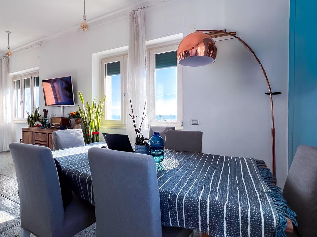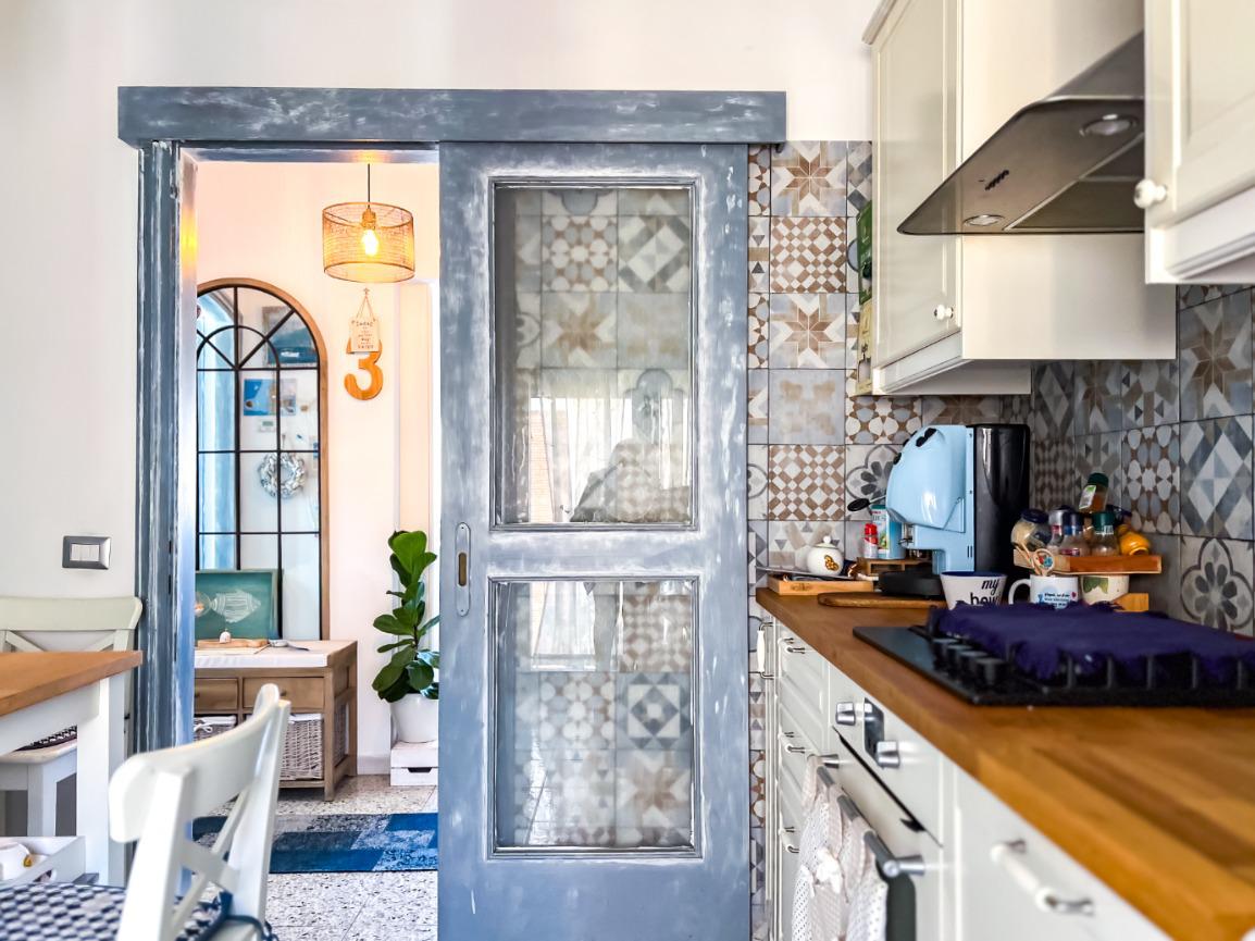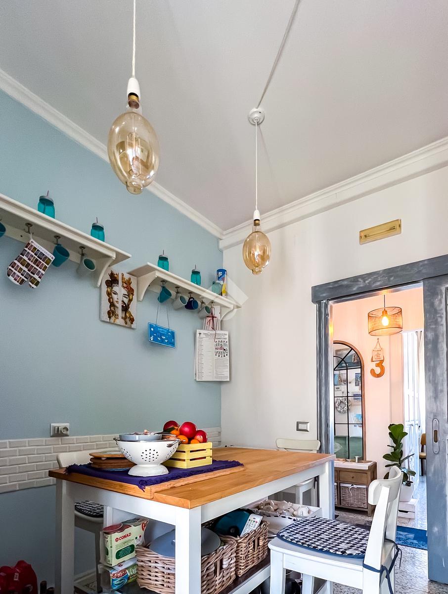La zona giorno comprende un soggiorno spazioso e una cucina abitabile con balconcino, perfetta per pranzi e momenti conviviali.