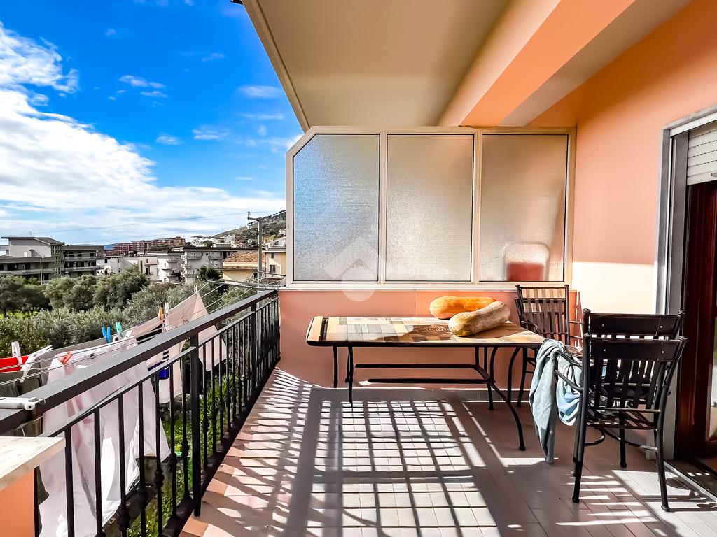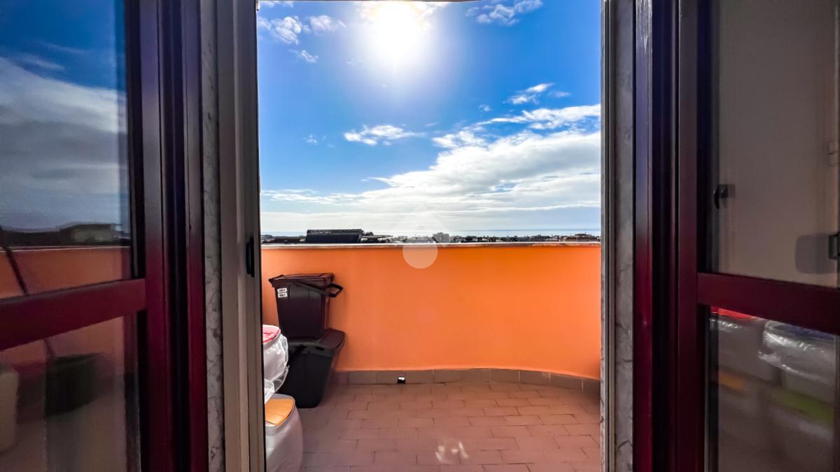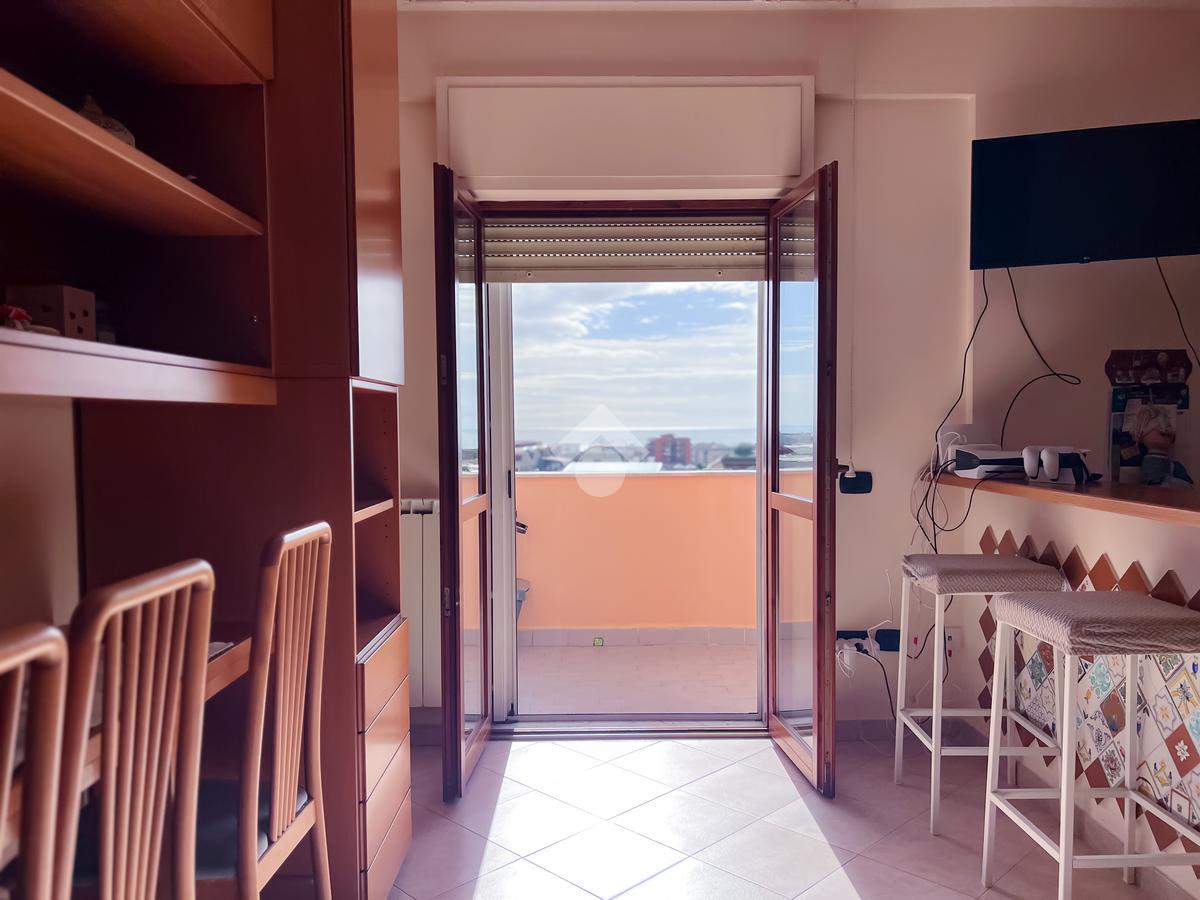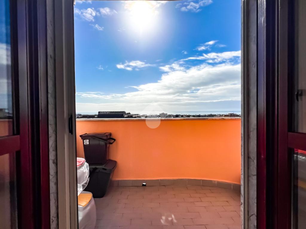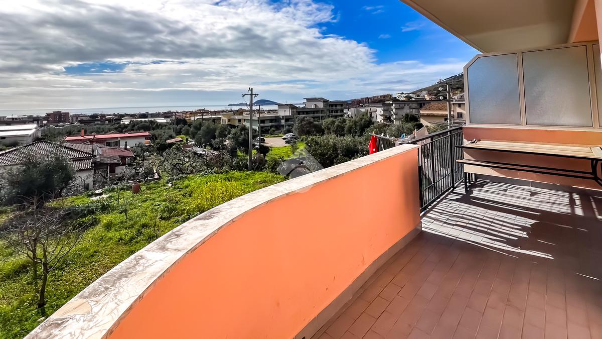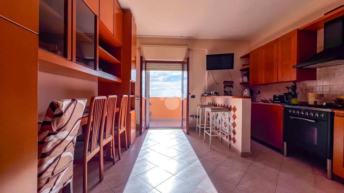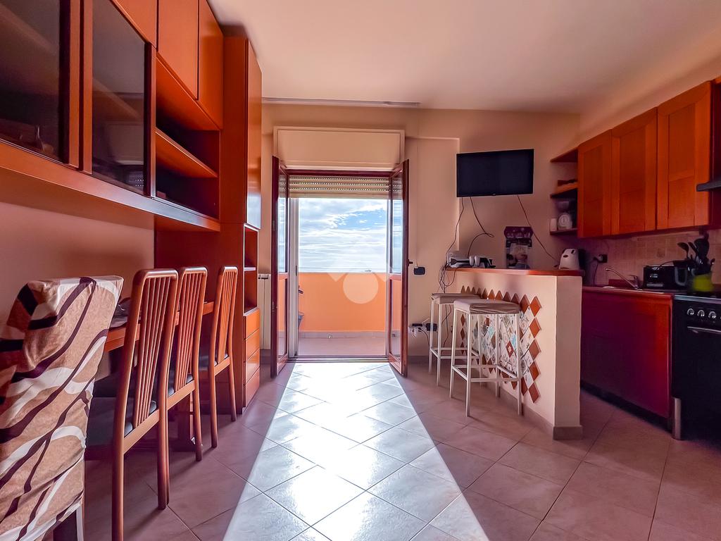 L’immobile è posto al secondo piano di una palazzina dotata di ascensore e dispone di posto auto. La superficie interna è di circa 70 mq ed è composta da ingresso nel corridoio, soggiorno con angolo cottura con accesso a un balcone panoramico, camera da letto matrimoniale con accesso al terrazzo vista mare, cameretta con uscita sullo stesso terrazzo e bagno
