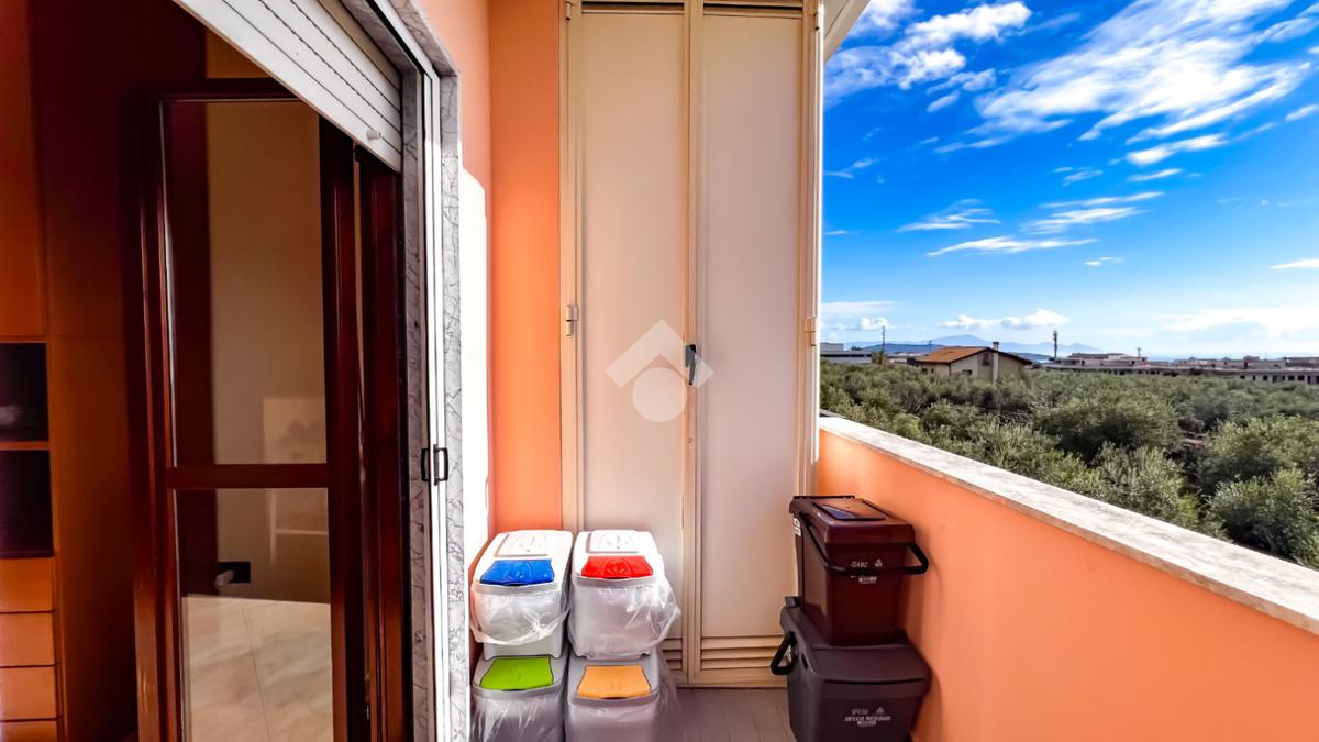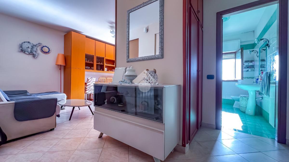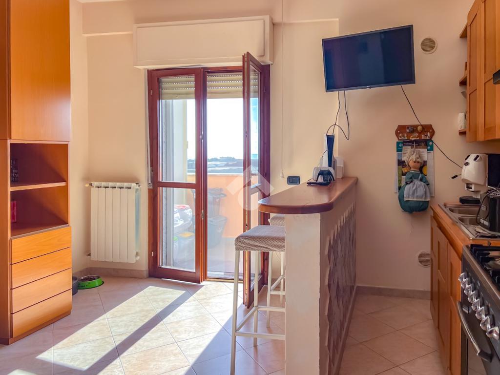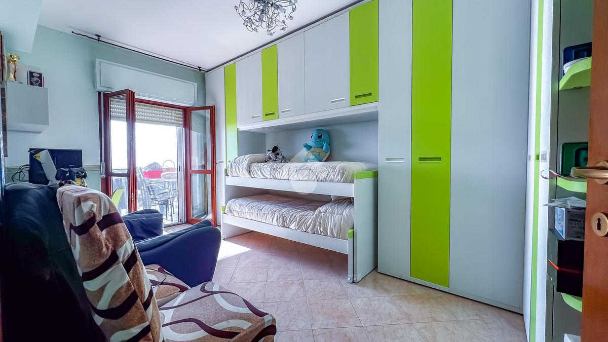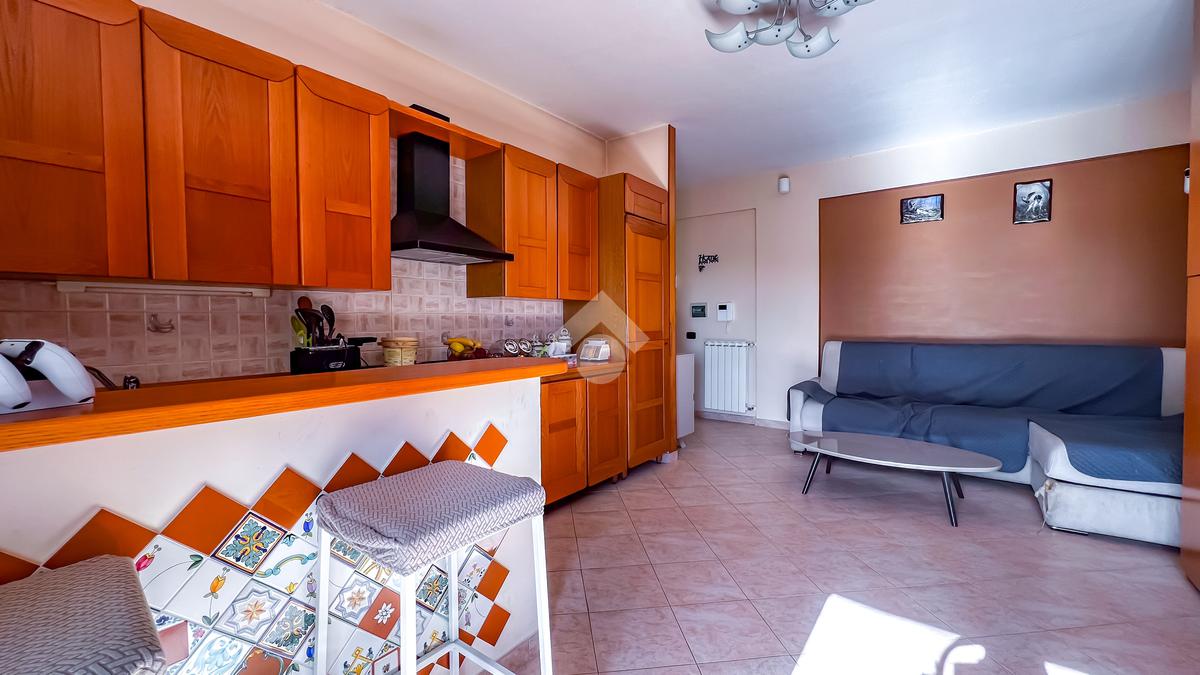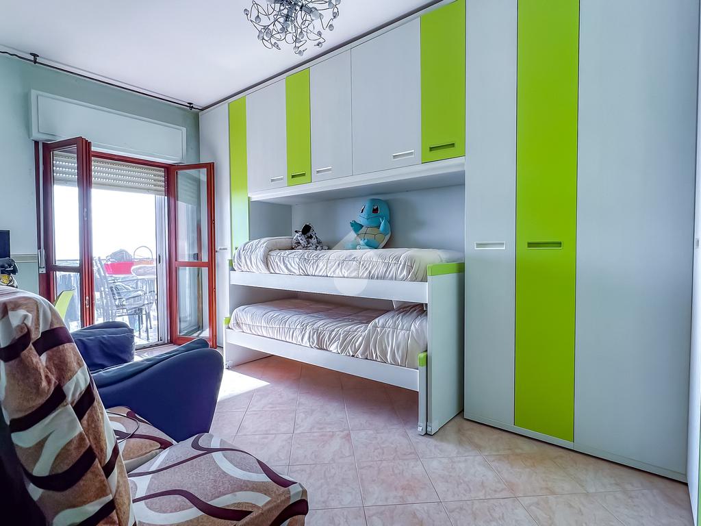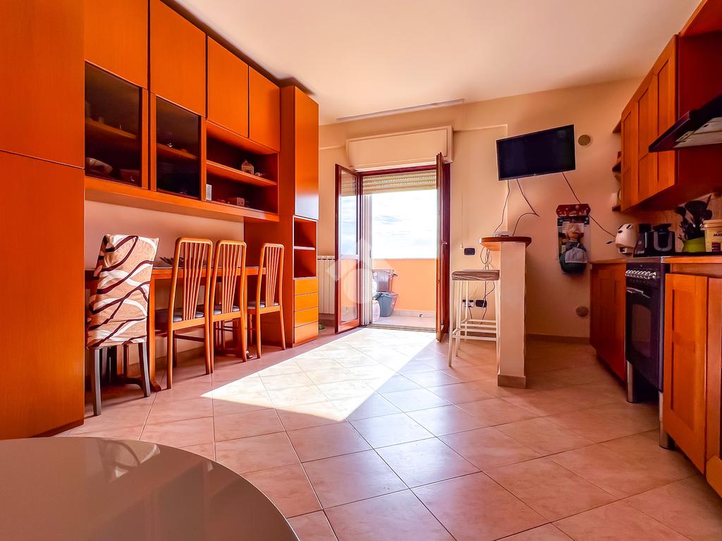 L’immobile è posto al secondo piano di una palazzina dotata di ascensore e dispone di posto auto. La superficie interna è di circa 70 mq ed è composta da ingresso nel corridoio, soggiorno con angolo cottura con accesso a un balcone panoramico, camera da letto matrimoniale con accesso al terrazzo vista mare, cameretta con uscita sullo stesso terrazzo e bagno