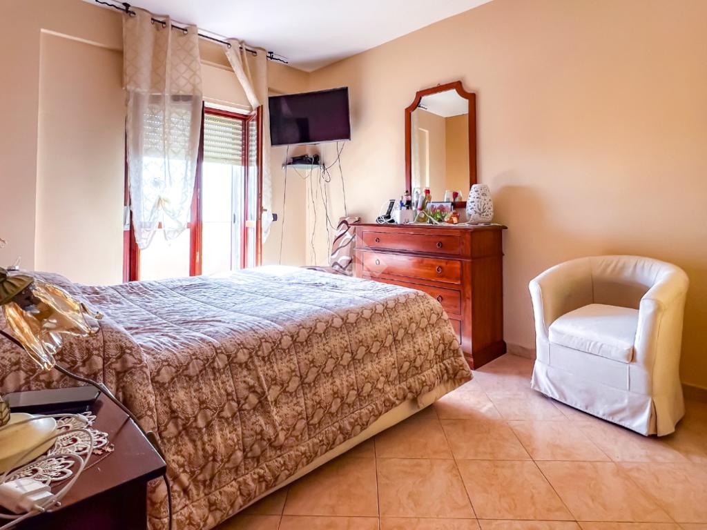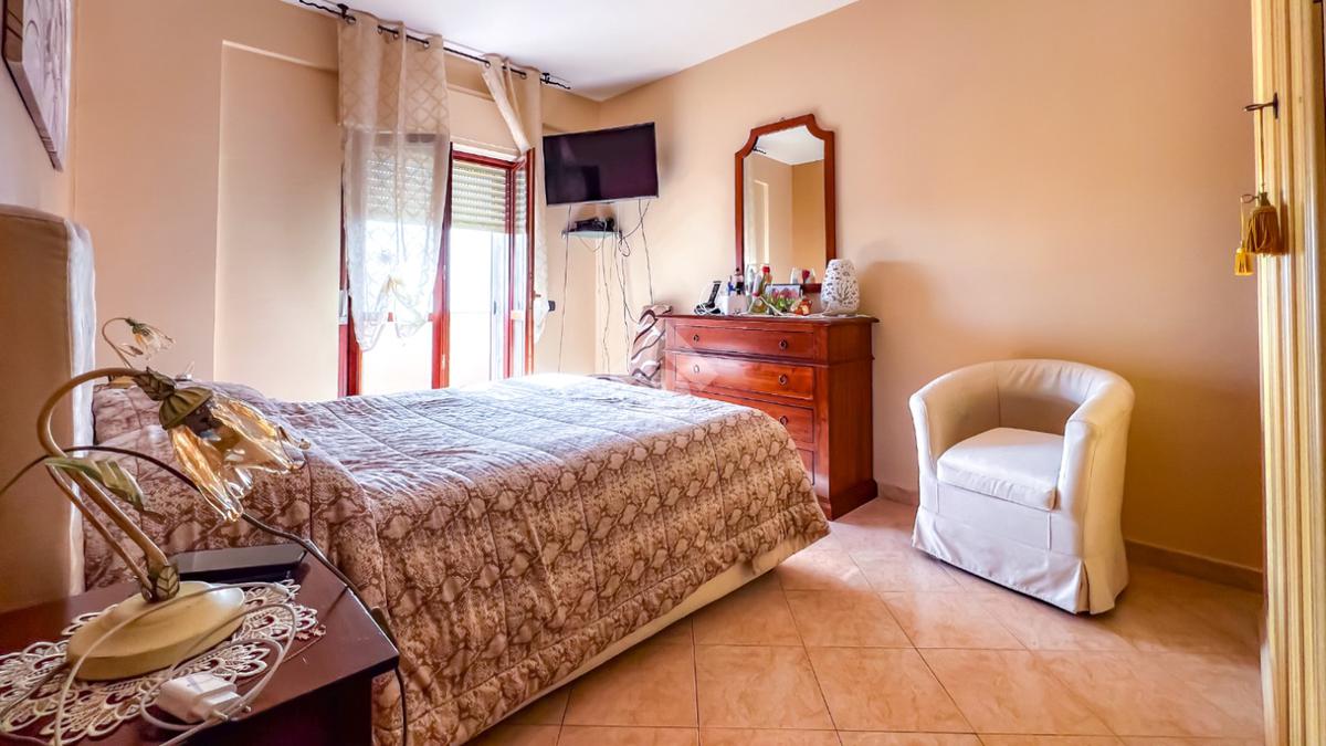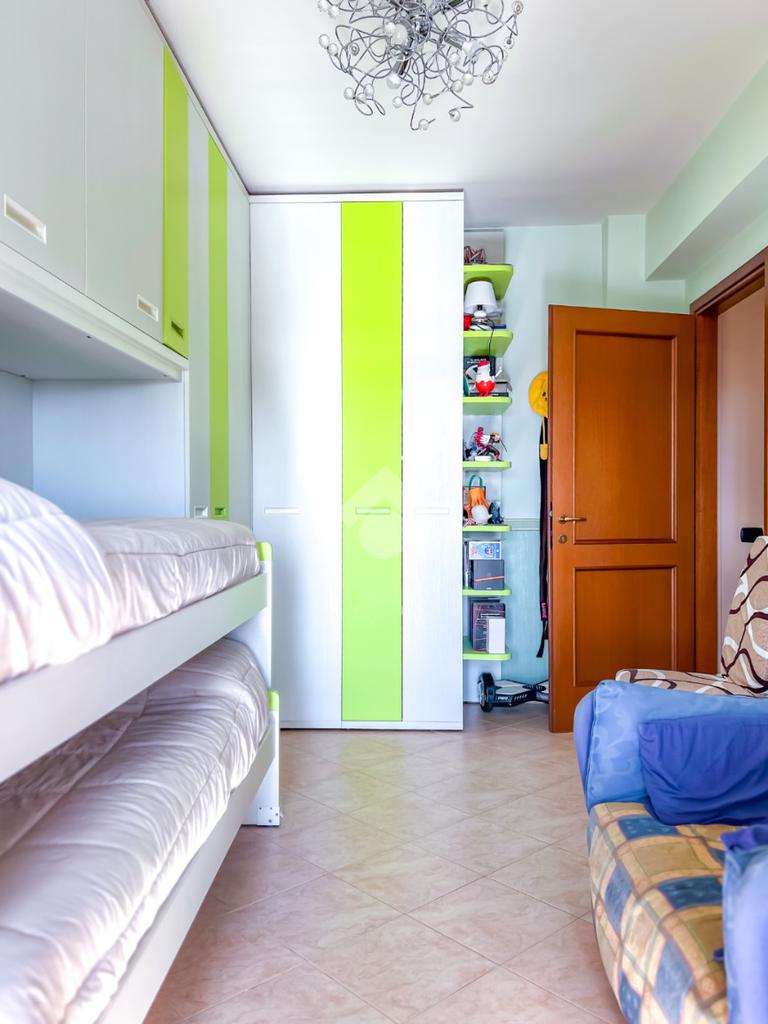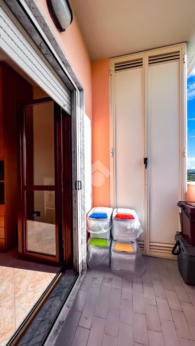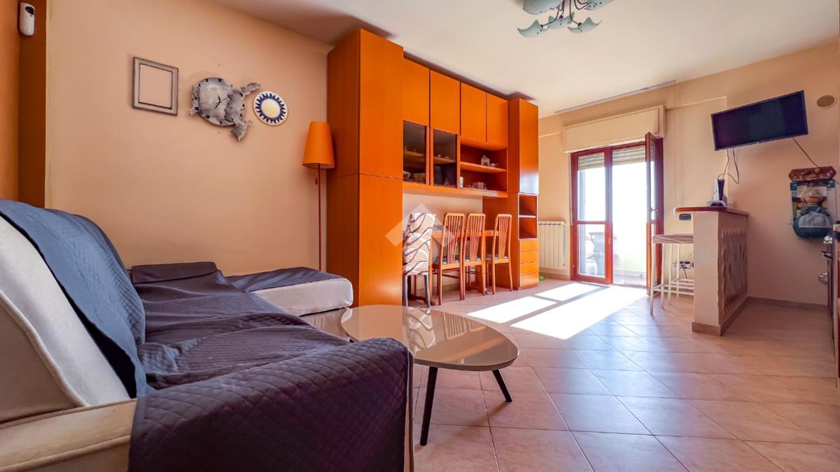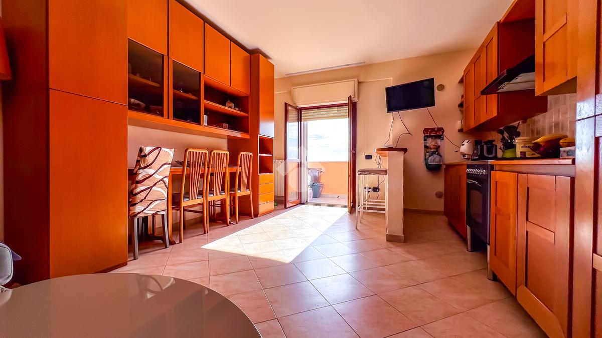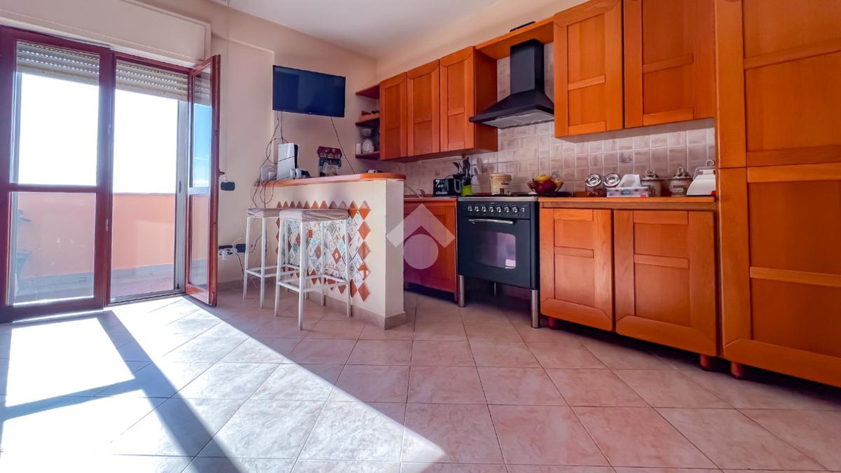 L’immobile è posto al secondo piano di una palazzina dotata di ascensore e dispone di posto auto. La superficie interna è di circa 70 mq ed è composta da ingresso nel corridoio, soggiorno con angolo cottura con accesso a un balcone panoramico, camera da letto matrimoniale con accesso al terrazzo vista mare, cameretta con uscita sullo stesso terrazzo e bagno