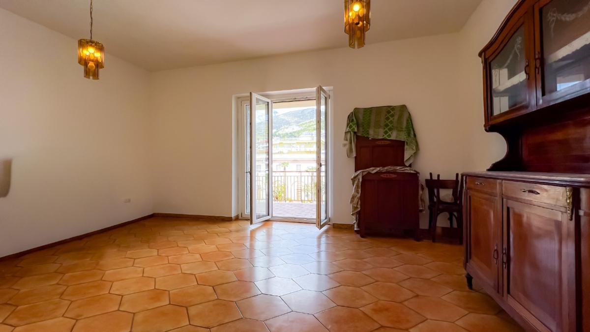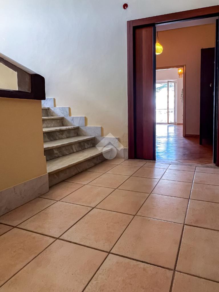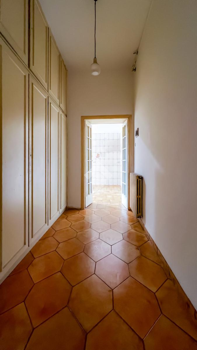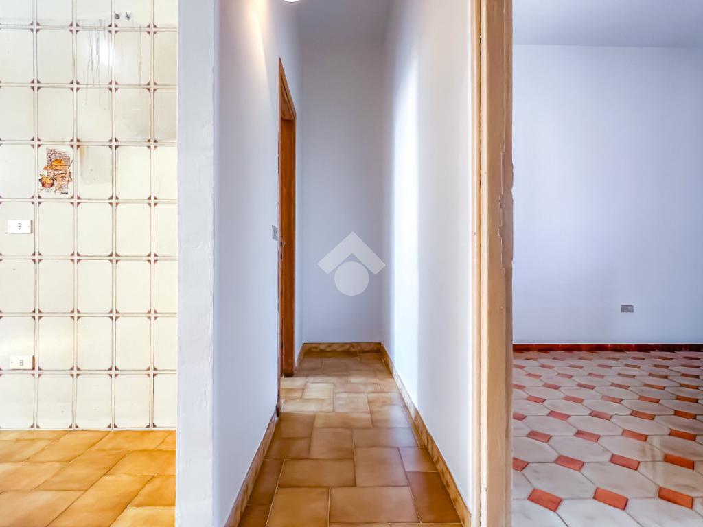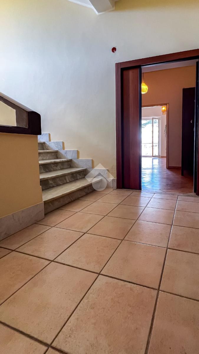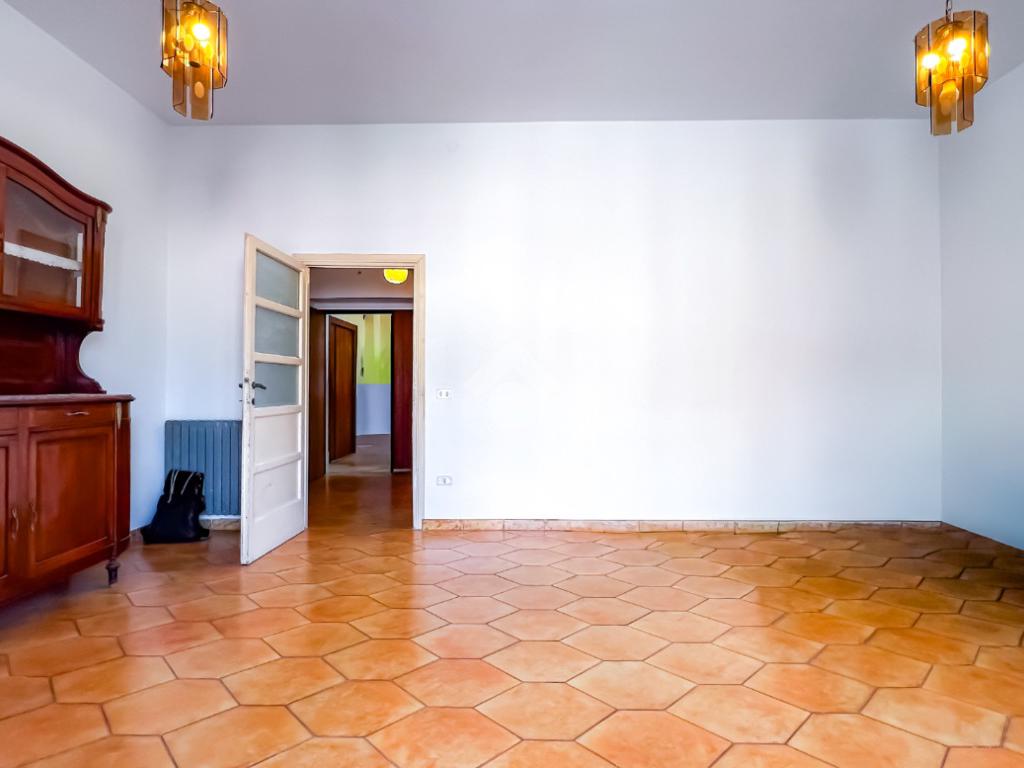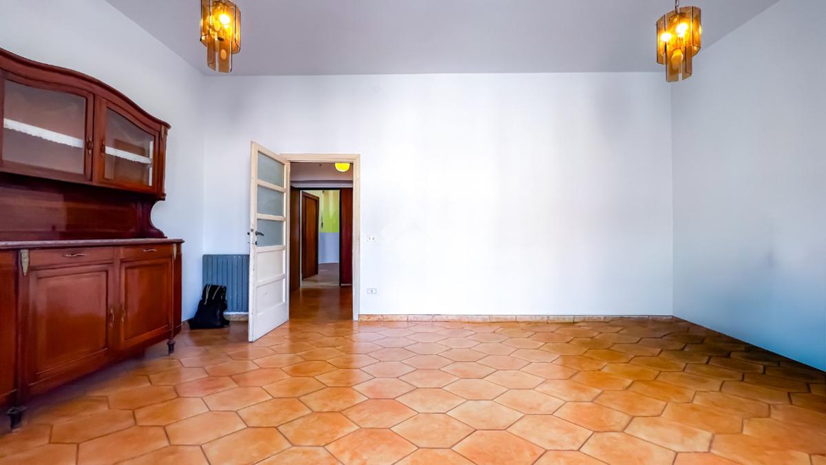 L’ingresso si apre su un ampio disimpegno che conduce agli ambienti della casa. Il soggiorno, luminoso e ben esposto, ha accesso diretto ad un ampio terrazzo con vista sulla Chiesa di San Giovanni, un affaccio aperto che dona respiro e luce all’ambiente.