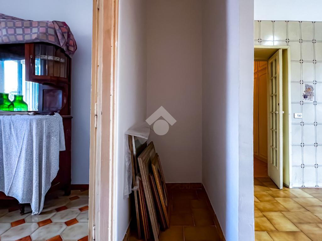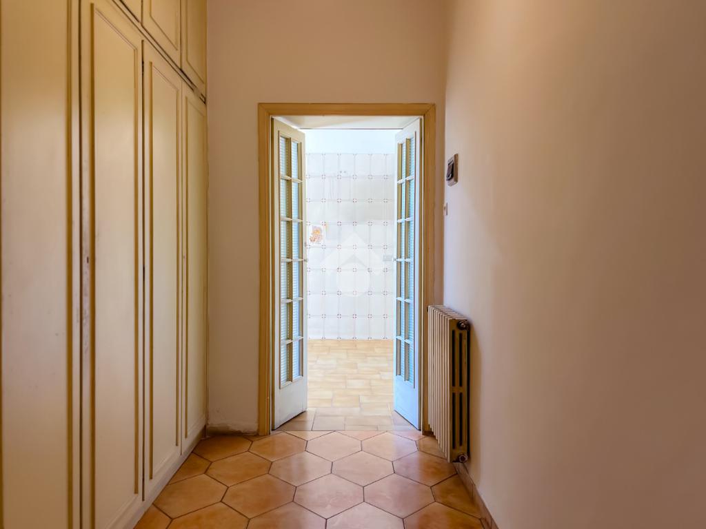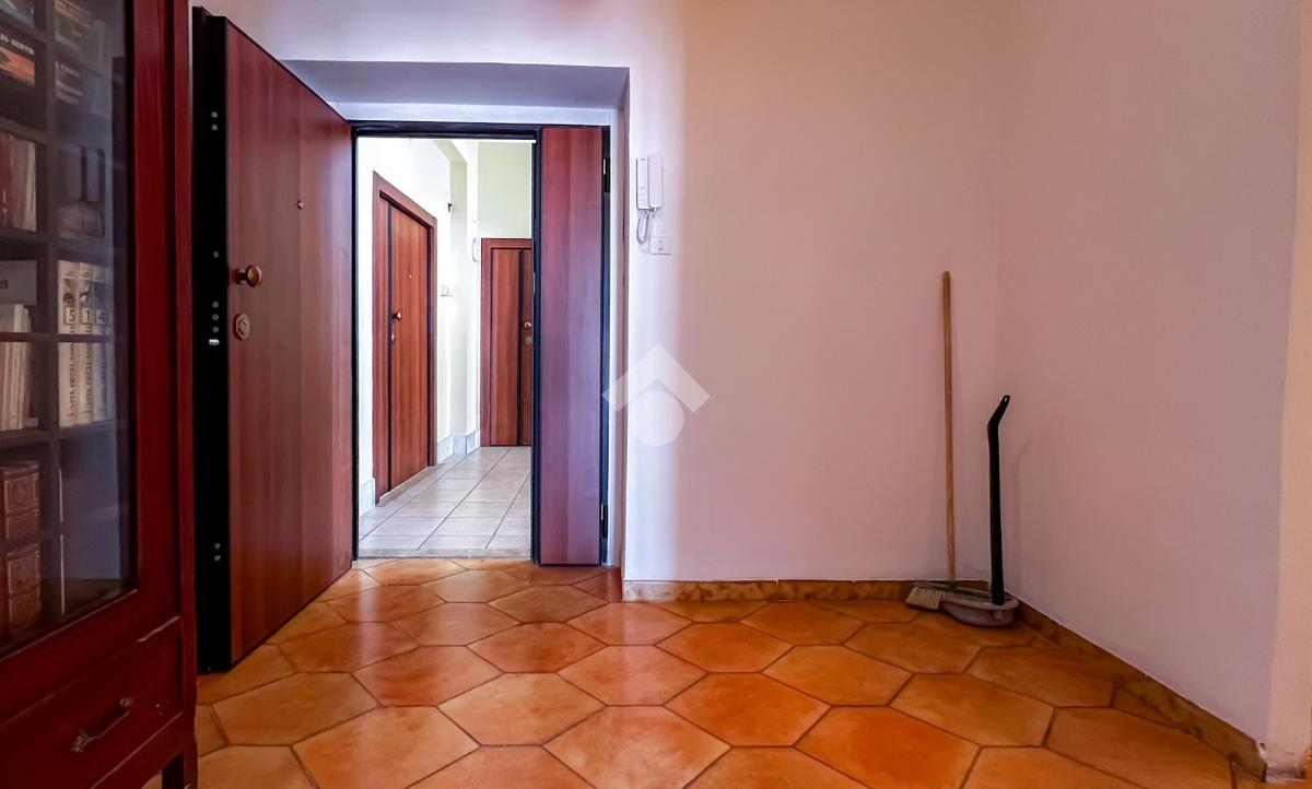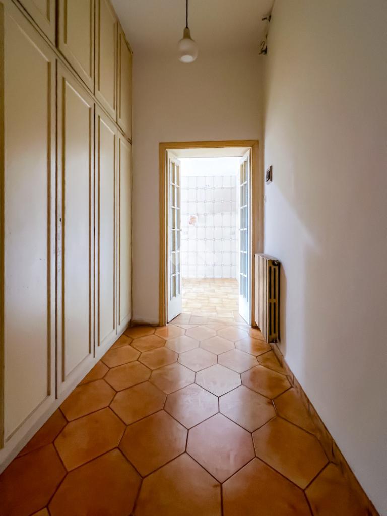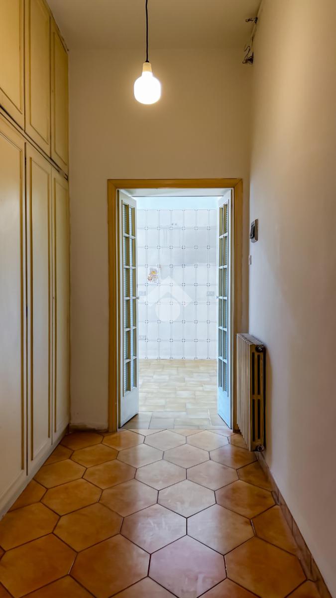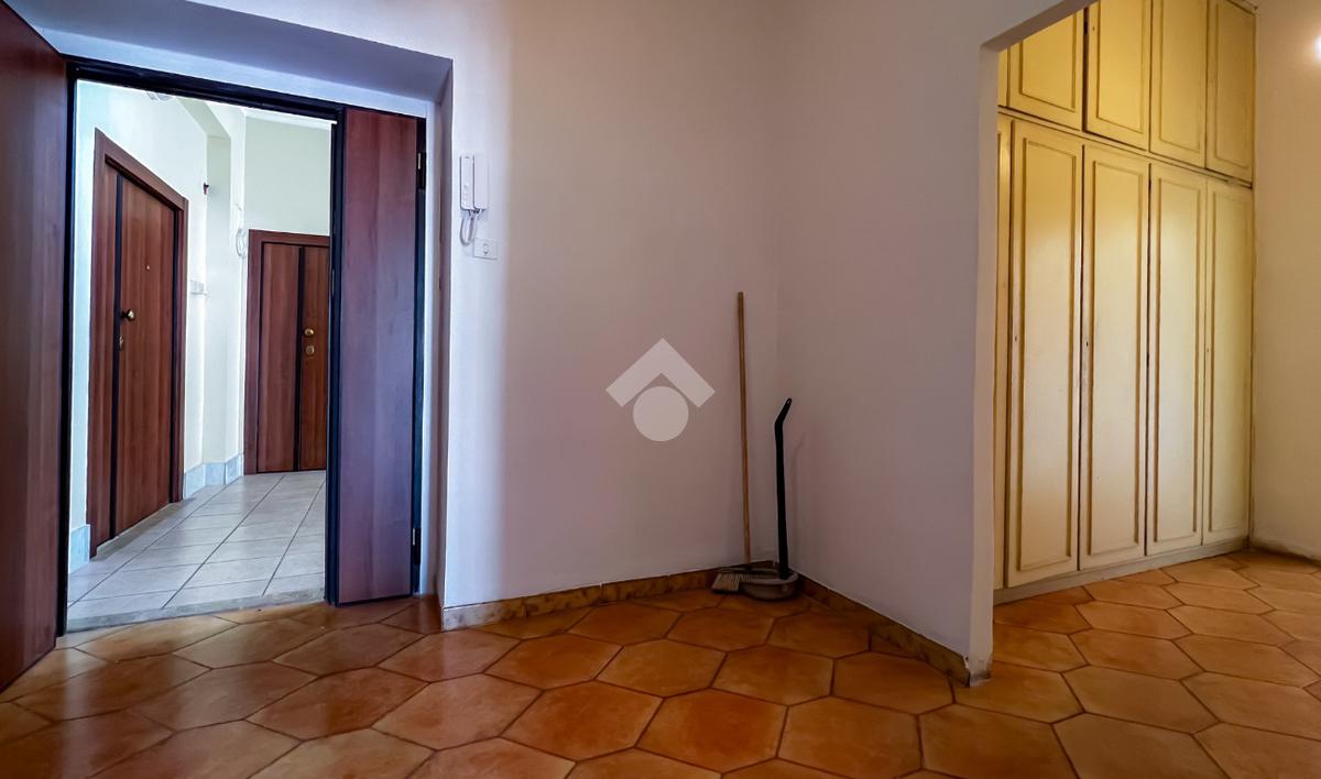 L’ingresso si apre su un ampio disimpegno che conduce agli ambienti della casa. Il soggiorno, luminoso e ben esposto, ha accesso diretto ad un ampio terrazzo con vista sulla Chiesa di San Giovanni, un affaccio aperto che dona respiro e luce all’ambiente.