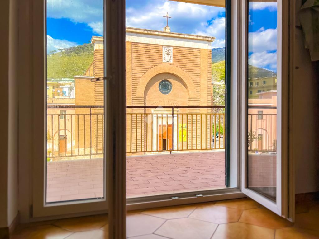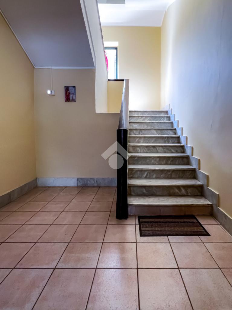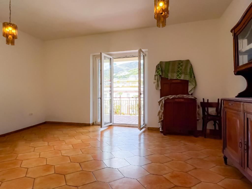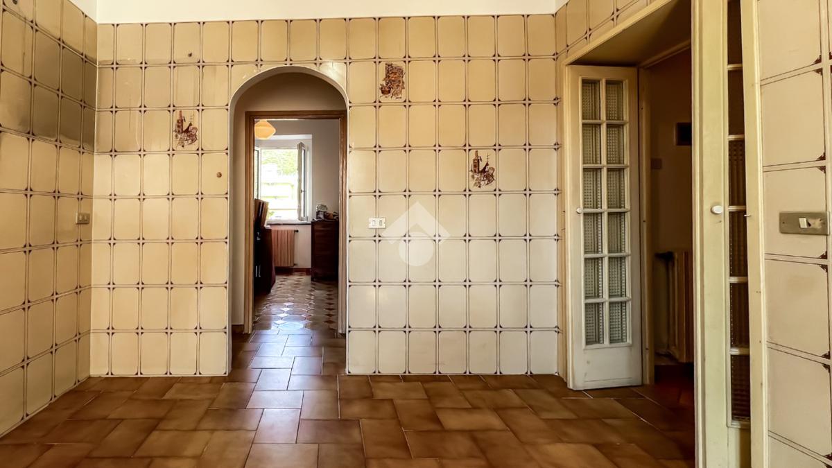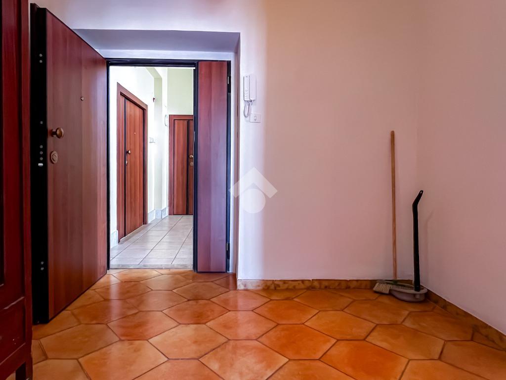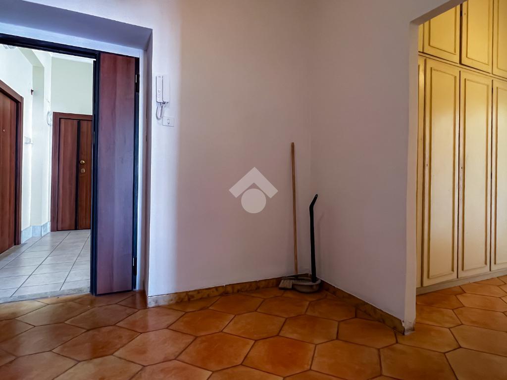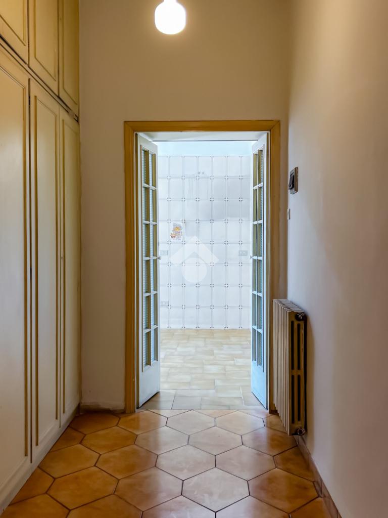 L’ingresso si apre su un ampio disimpegno che conduce agli ambienti della casa. Il soggiorno, luminoso e ben esposto, ha accesso diretto ad un ampio terrazzo con vista sulla Chiesa di San Giovanni, un affaccio aperto che dona respiro e luce all’ambiente.