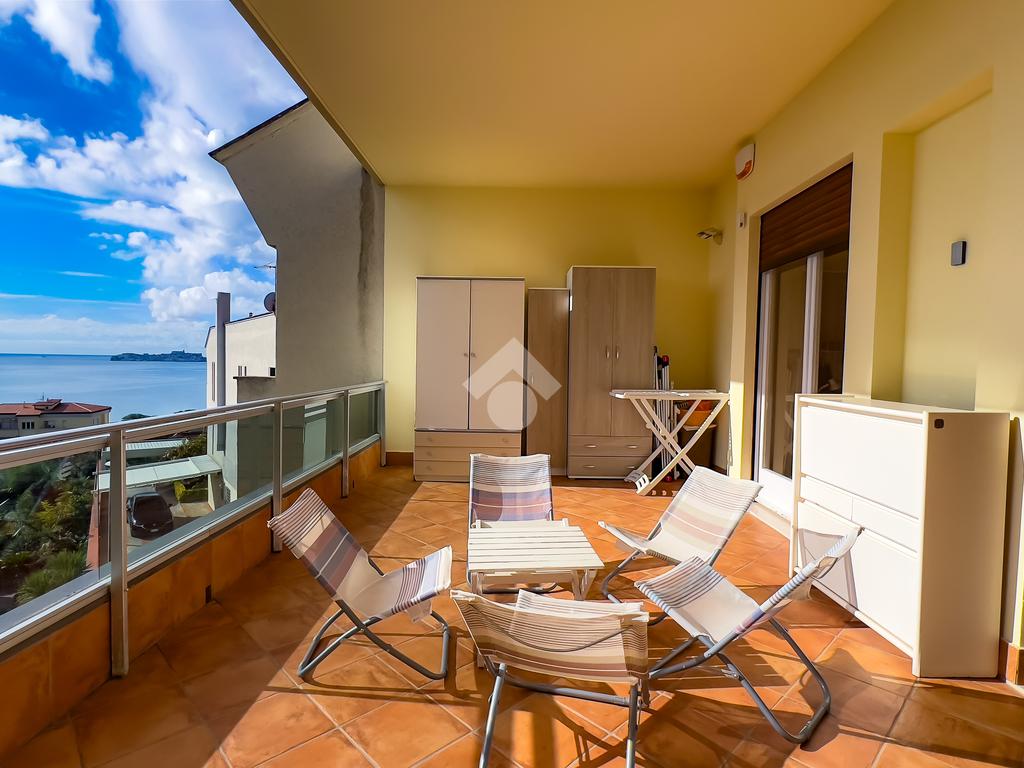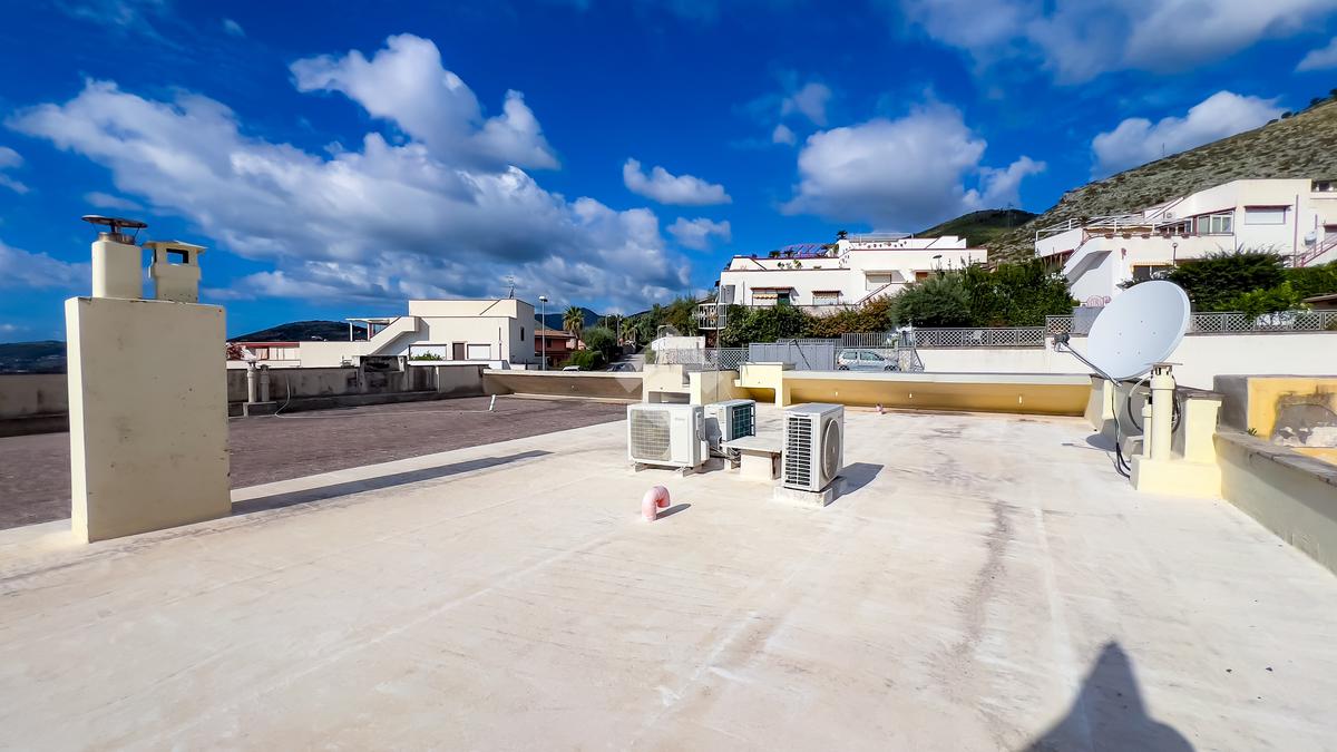 Completano la proprietà un box auto di 28 mq, una cantina di 34 mq, un giardino curato di 80 mq, balconi per 42 mq e un terrazzo panoramico di 40 mq da cui si gode una vista incantevole sul Golfo di Gaeta.