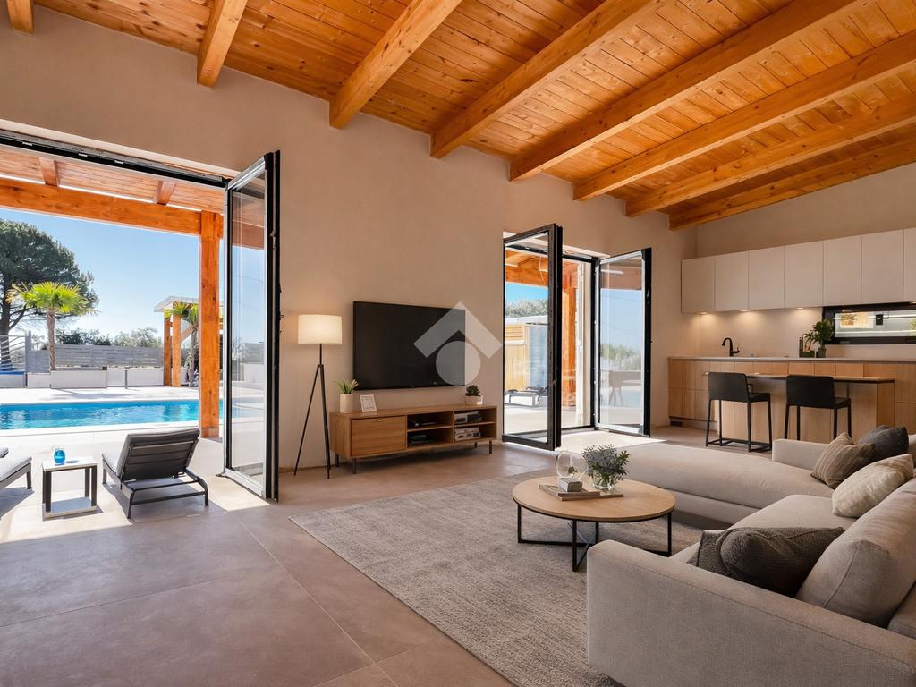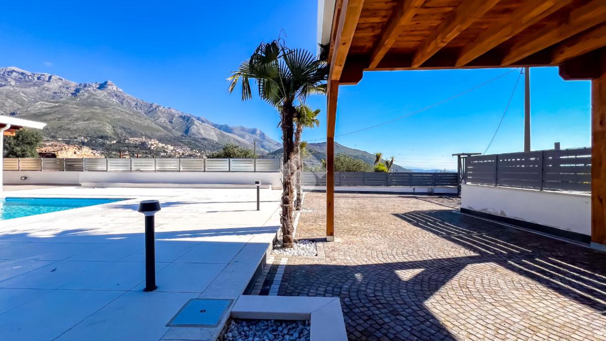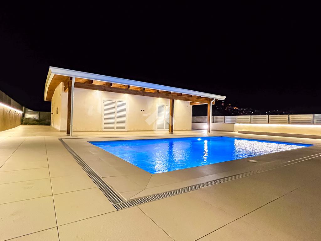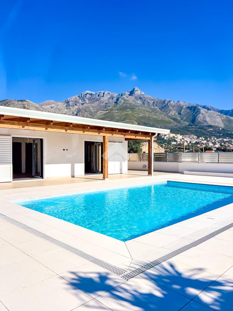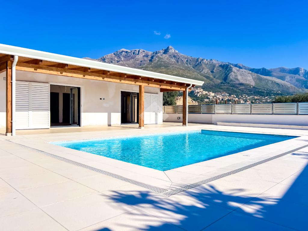 Villa di nuova costruzione con piscina a sfioro, porticato e giardino — panoramica, esclusiva, pronta da vivere