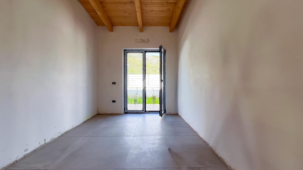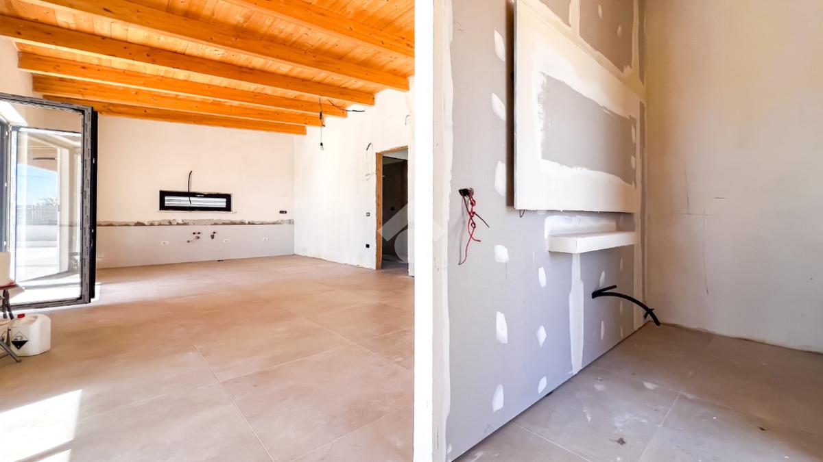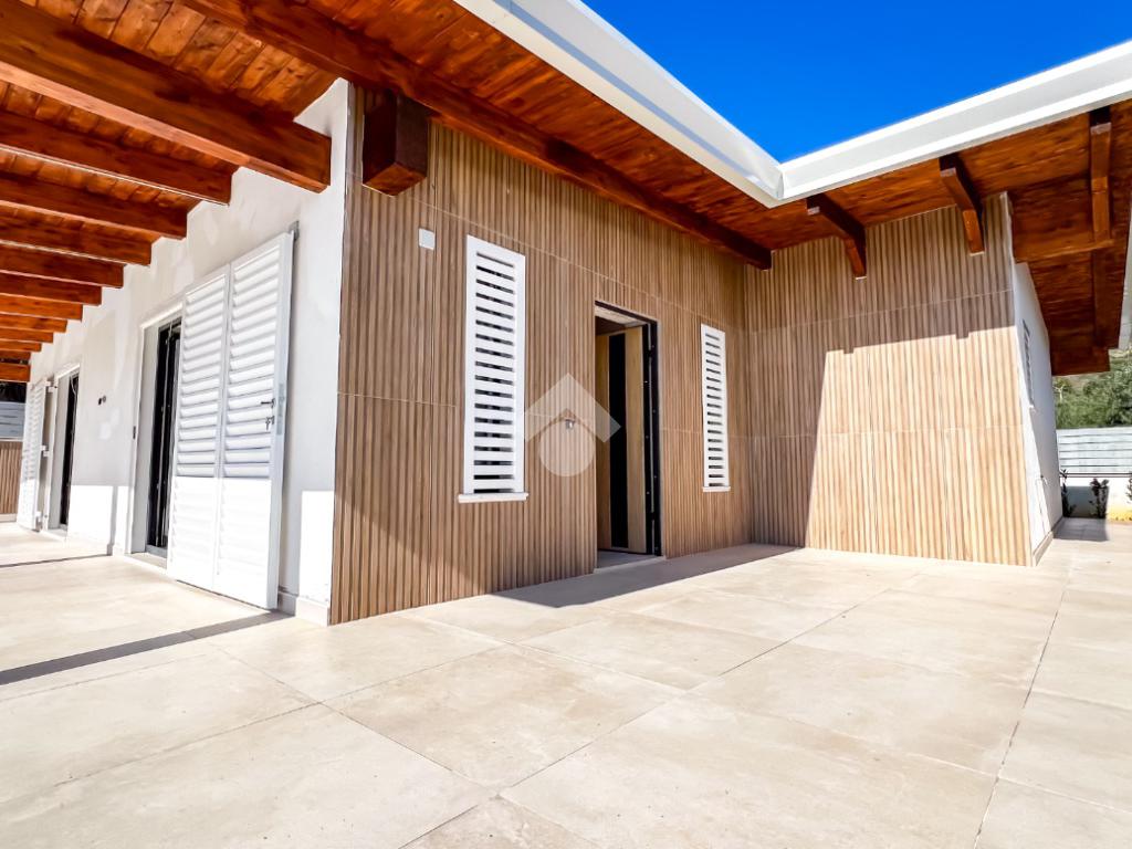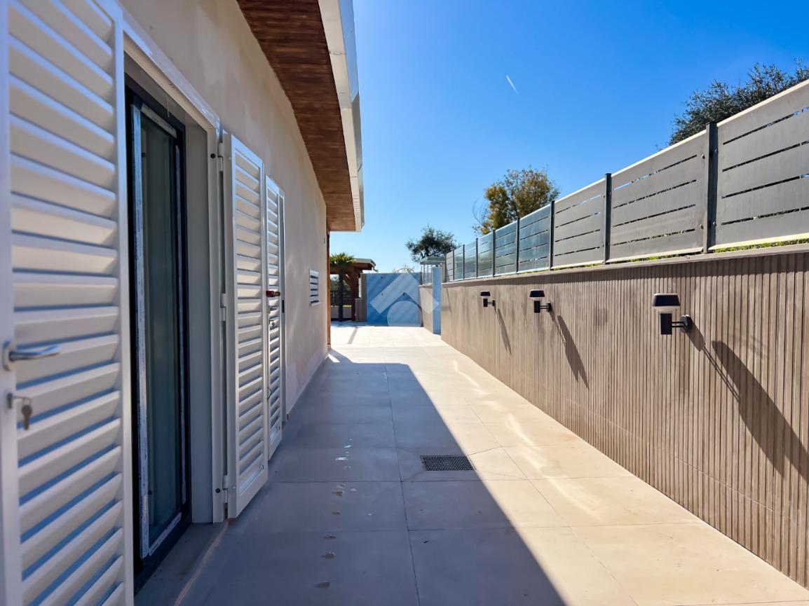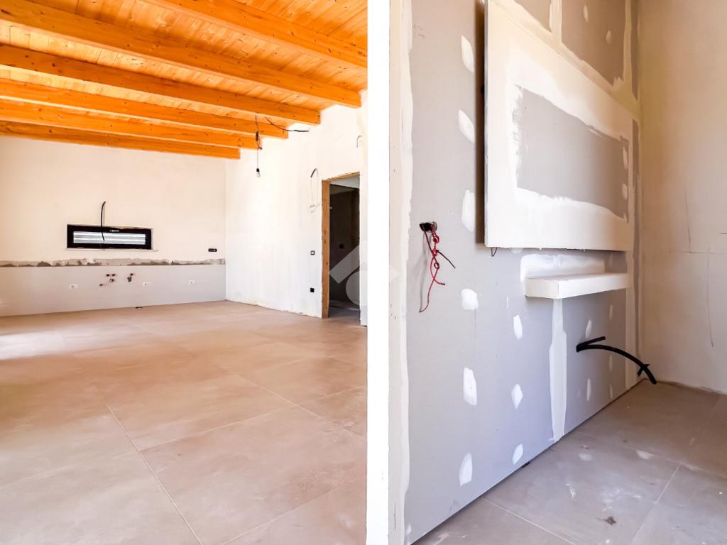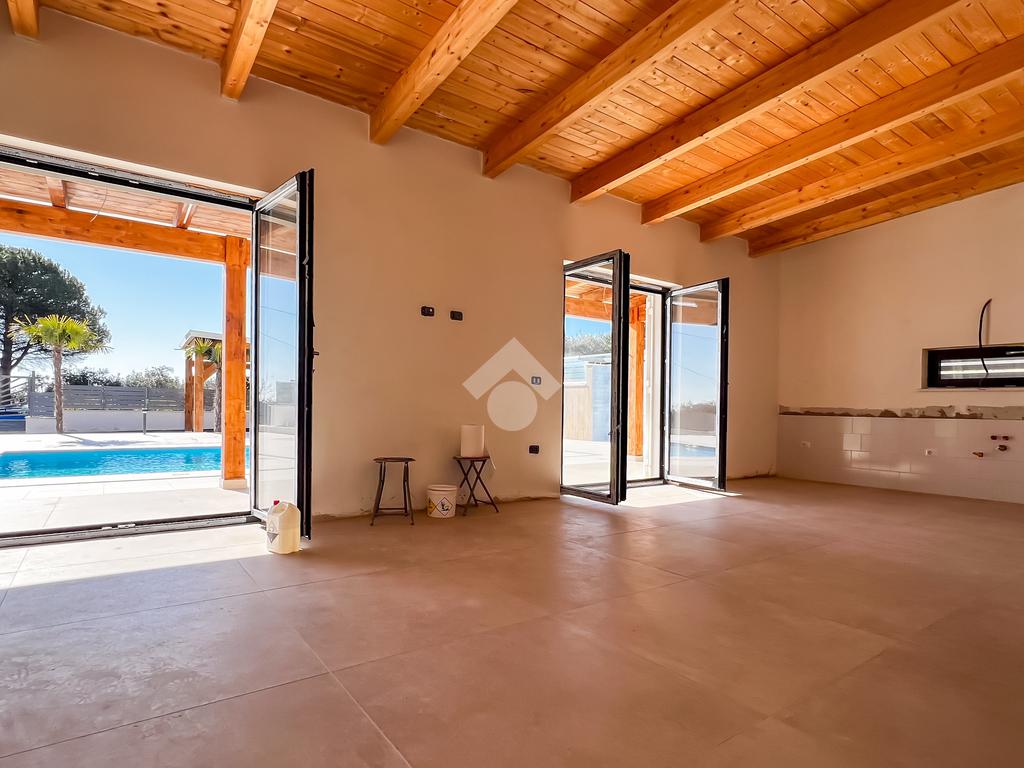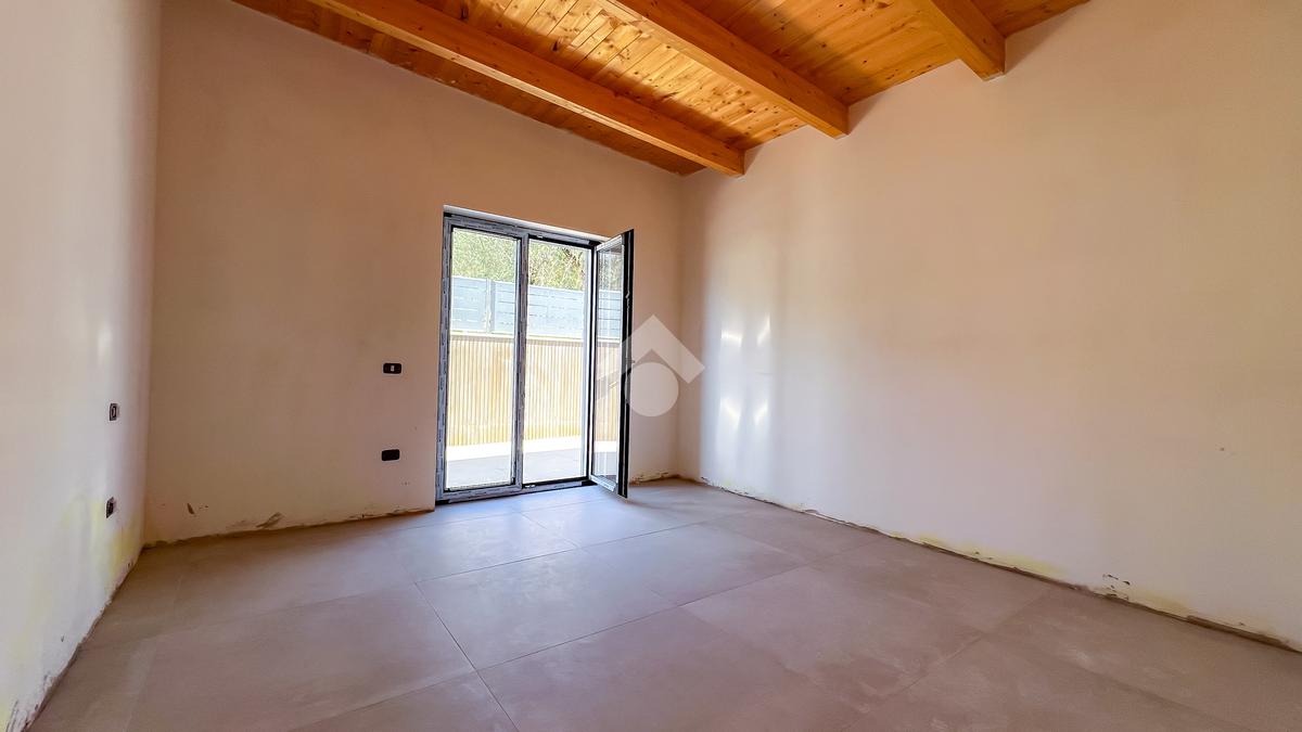 Gli interni, di circa 110 mq di superficie calpestabile, sono stati progettati per dialogare con l’esterno in modo naturale e continuo. Il soggiorno con angolo cottura, ampio e luminoso, è valorizzato da grandi porte-finestre che aprono lo spazio verso il porticato. La zona notte ospita tre camere matrimoniali e due bagni moderni, con un’organizzazione degli spazi pensata per offrire comfort, equilibrio e privacy. Completa la proprietà un pratico ambiente ripostiglio/lavanderia.