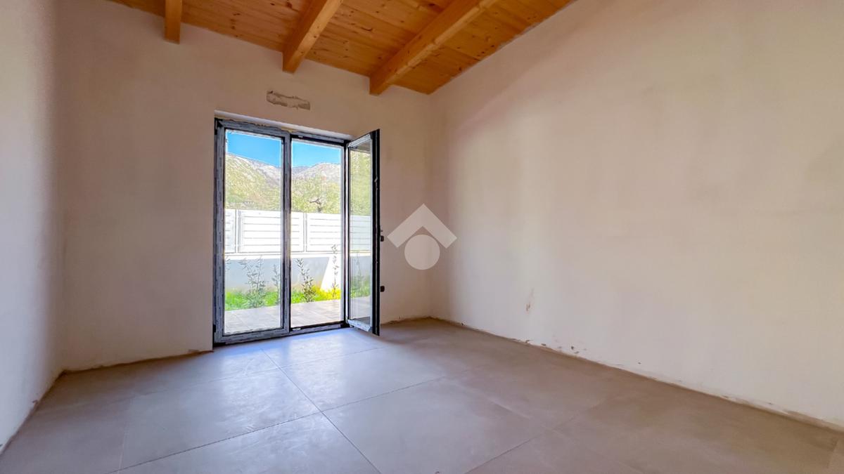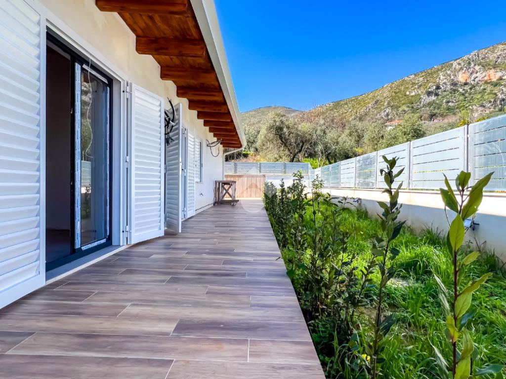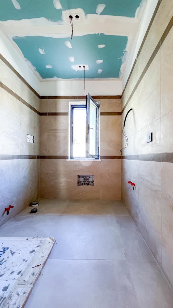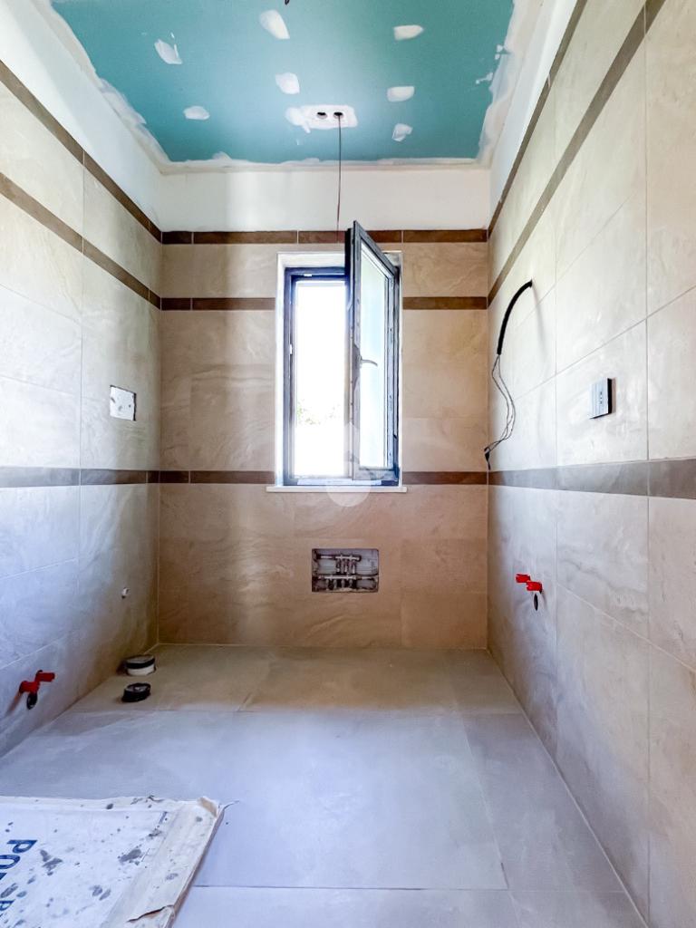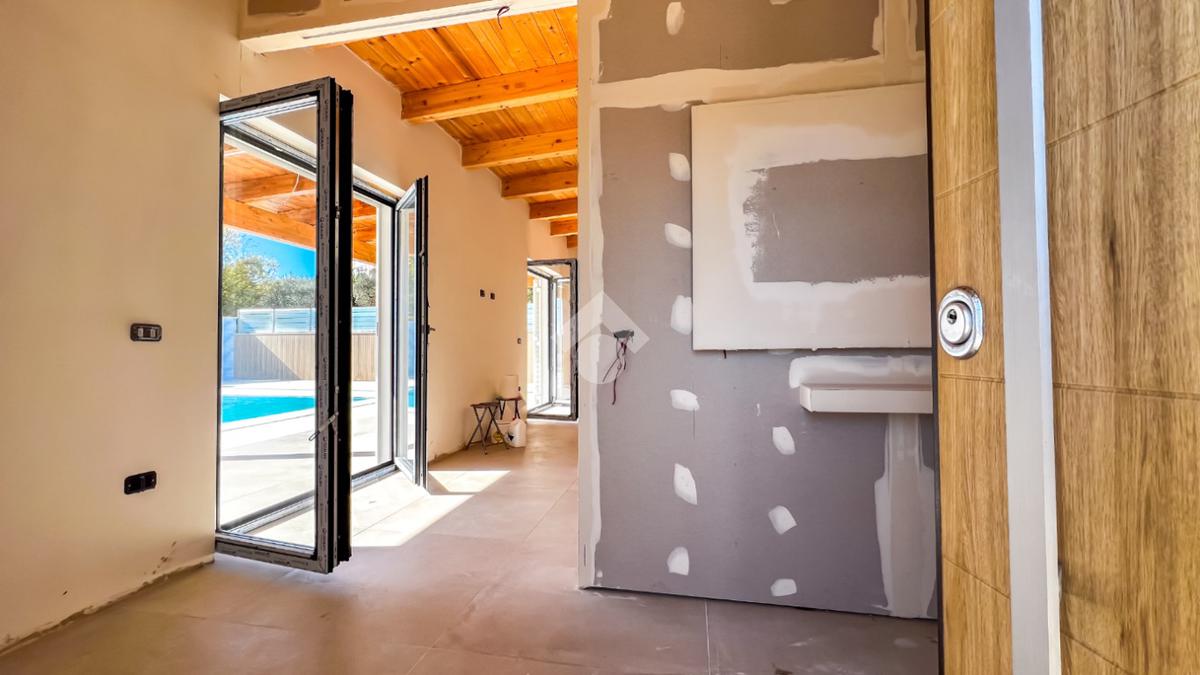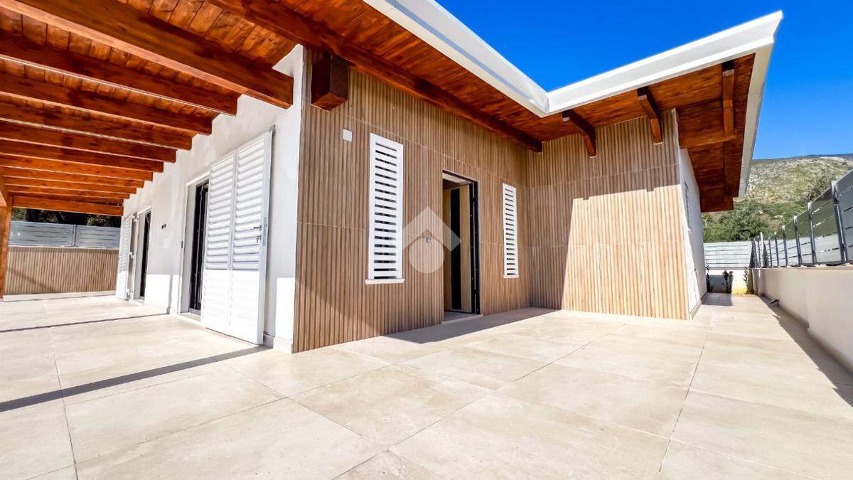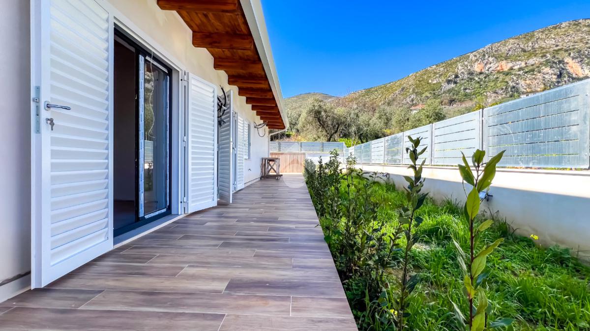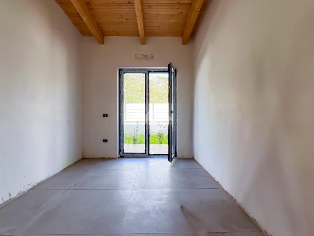 Gli interni, di circa 110 mq di superficie calpestabile, sono stati progettati per dialogare con l’esterno in modo naturale e continuo. Il soggiorno con angolo cottura, ampio e luminoso, è valorizzato da grandi porte-finestre che aprono lo spazio verso il porticato. La zona notte ospita tre camere matrimoniali e due bagni moderni, con un’organizzazione degli spazi pensata per offrire comfort, equilibrio e privacy. Completa la proprietà un pratico ambiente ripostiglio/lavanderia.